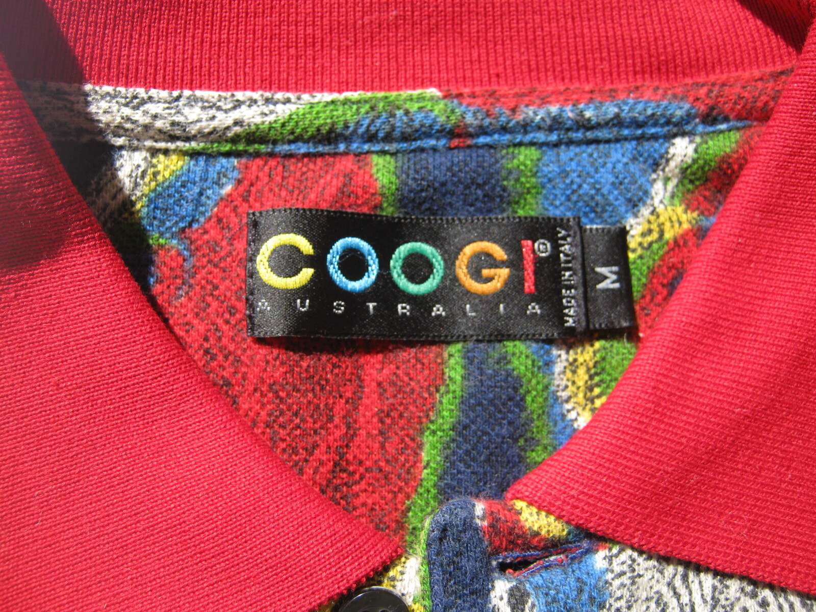 Vintage Coogi Men s Vibrant Geometric Cotton Knit Polo Shirt M Australia Mint