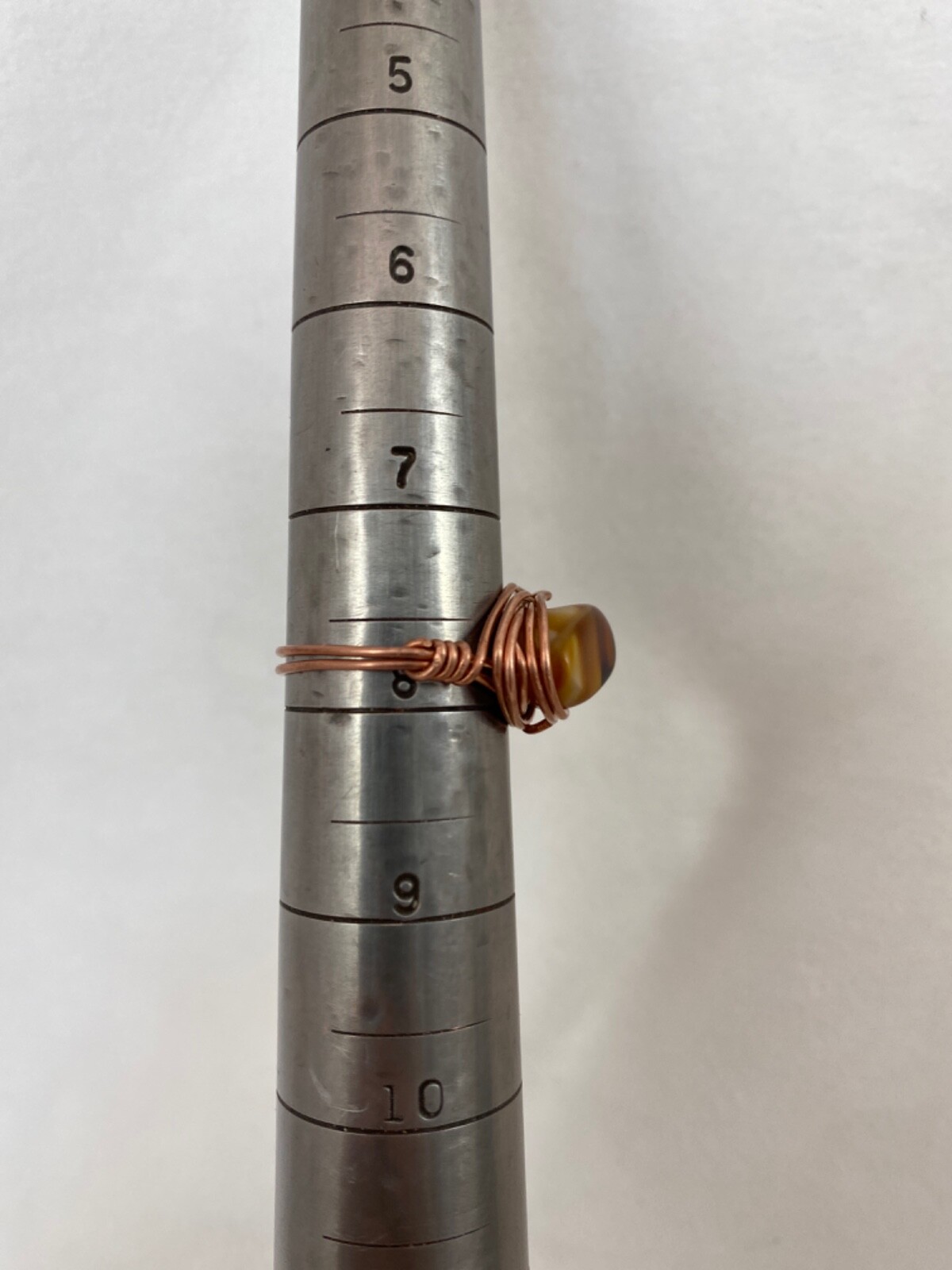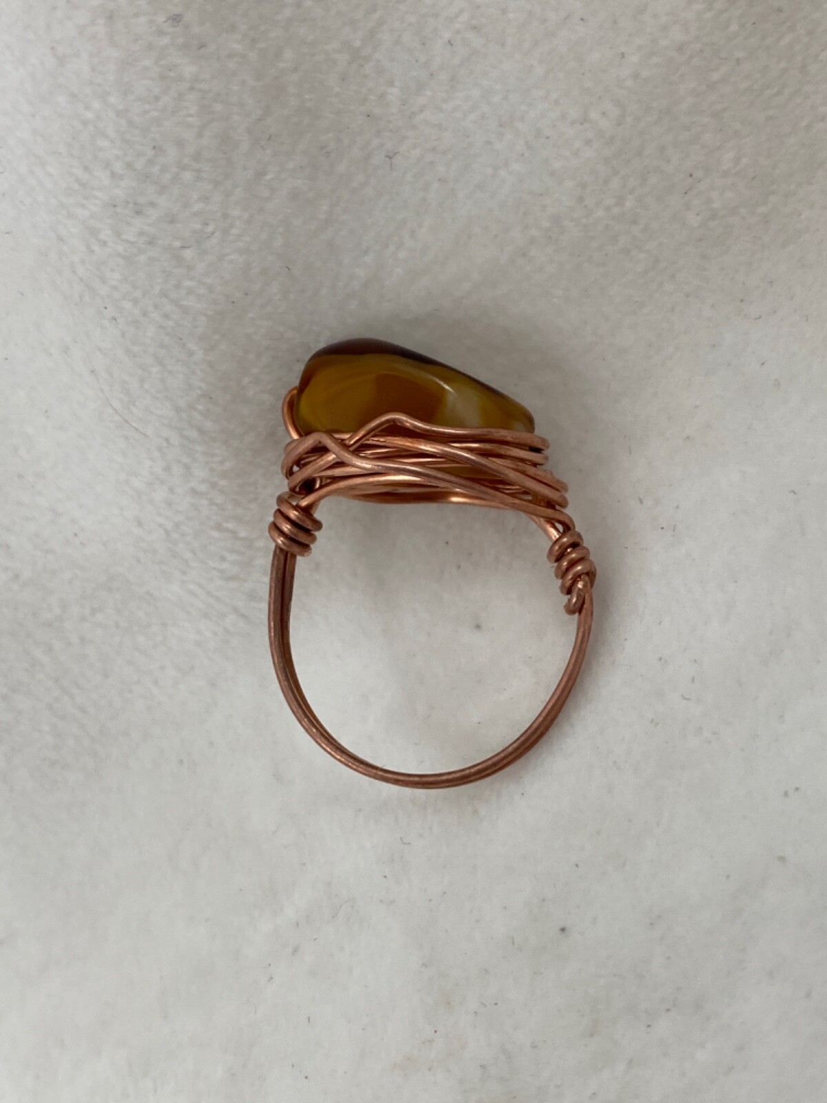 Handmade Copper Wire Wrap Glass Bead Ring Size 7 3/4. 207