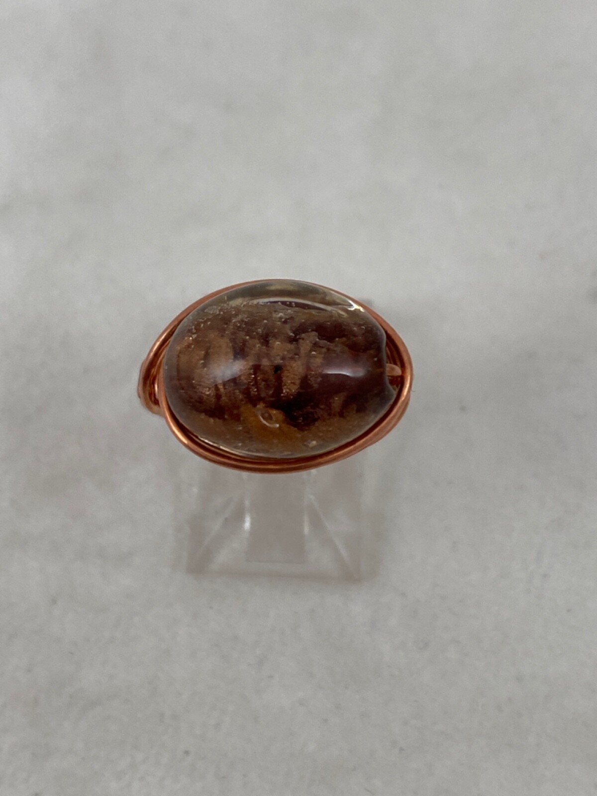 Handmade Copper Wire Wrap Glass Bead Ring Size 6 206