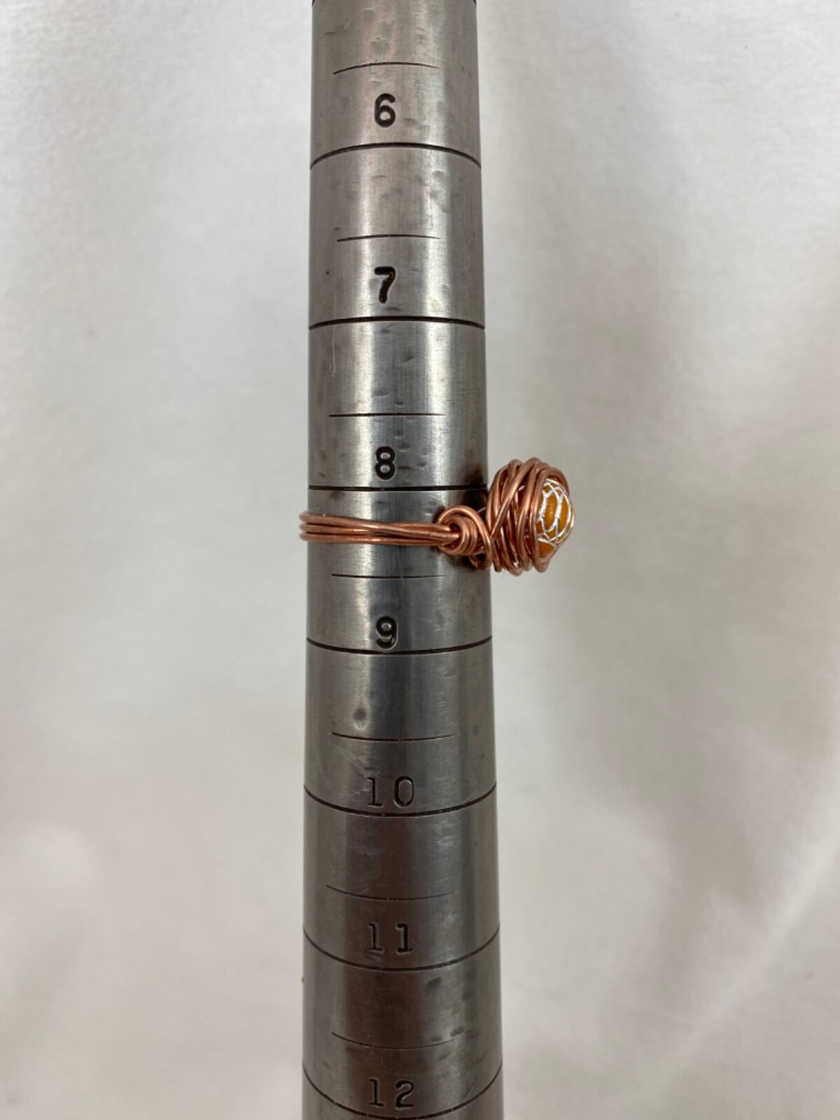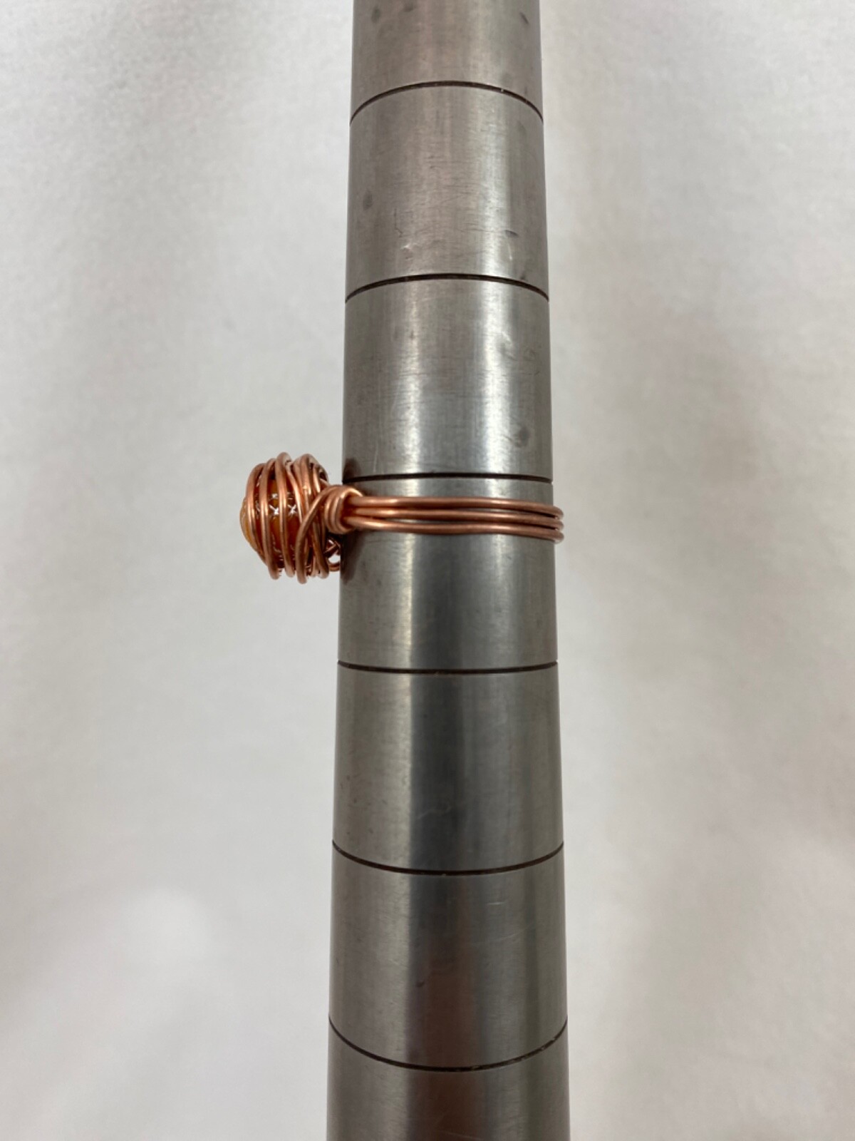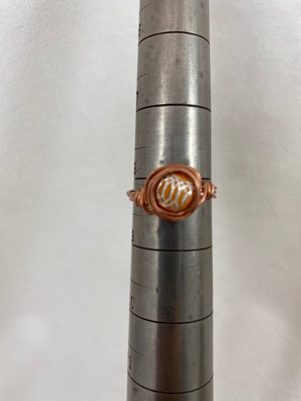 Handmade Copper Wire Wrap Glass Bead Ring Size 8 1/4 232