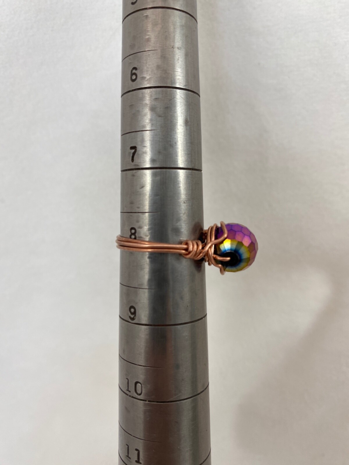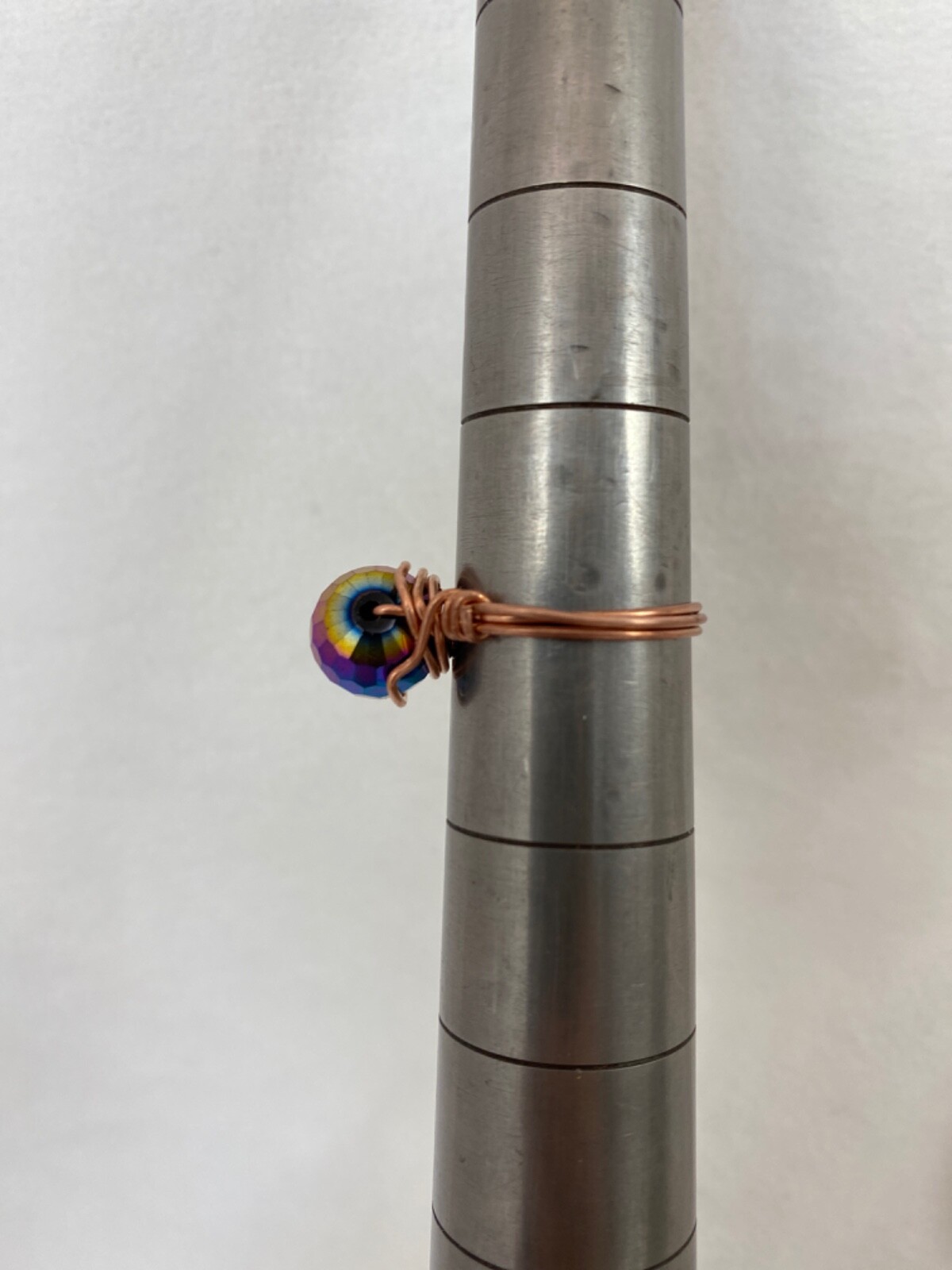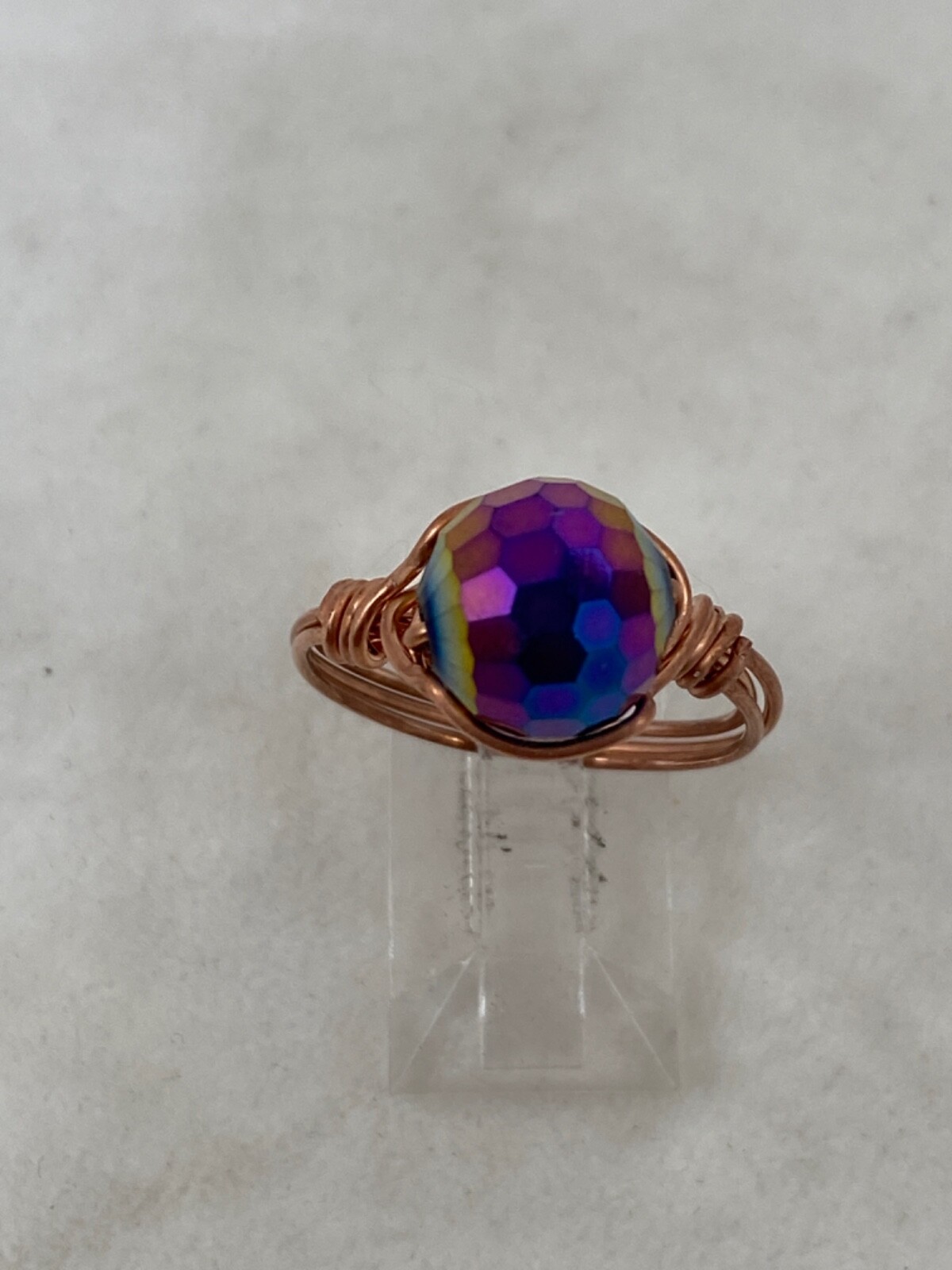 Handmade Copper Wire Wrap AB Glass Bead Ring Size 8 215