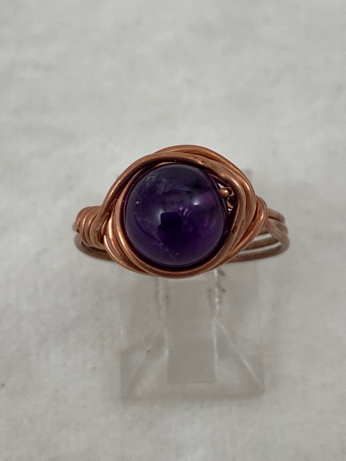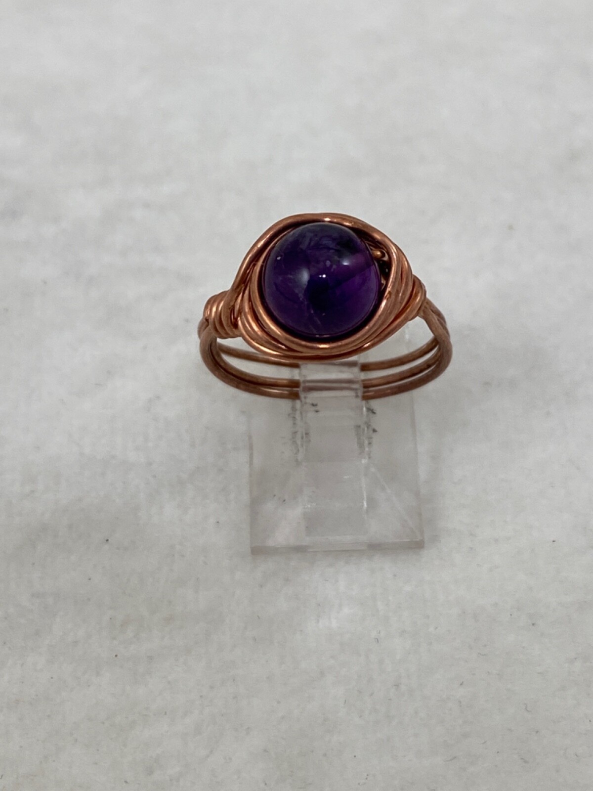 Handmade Copper Wire Wrap Amethyst Bead Ring Size 6 1/2 198
