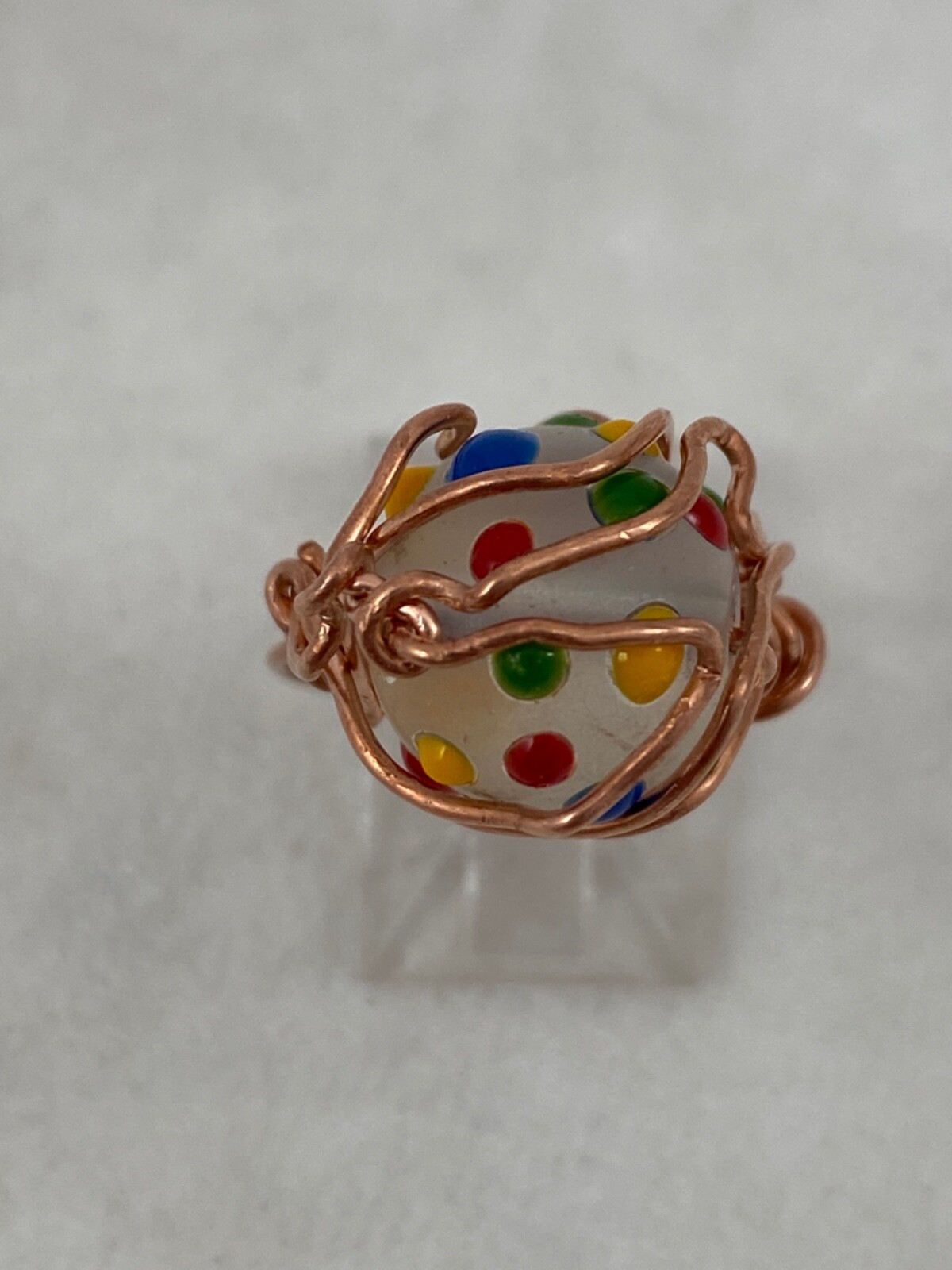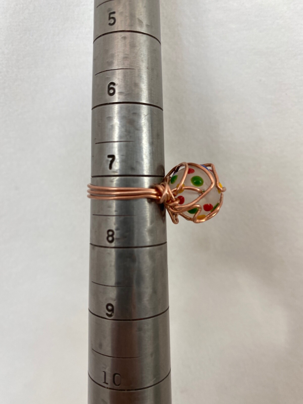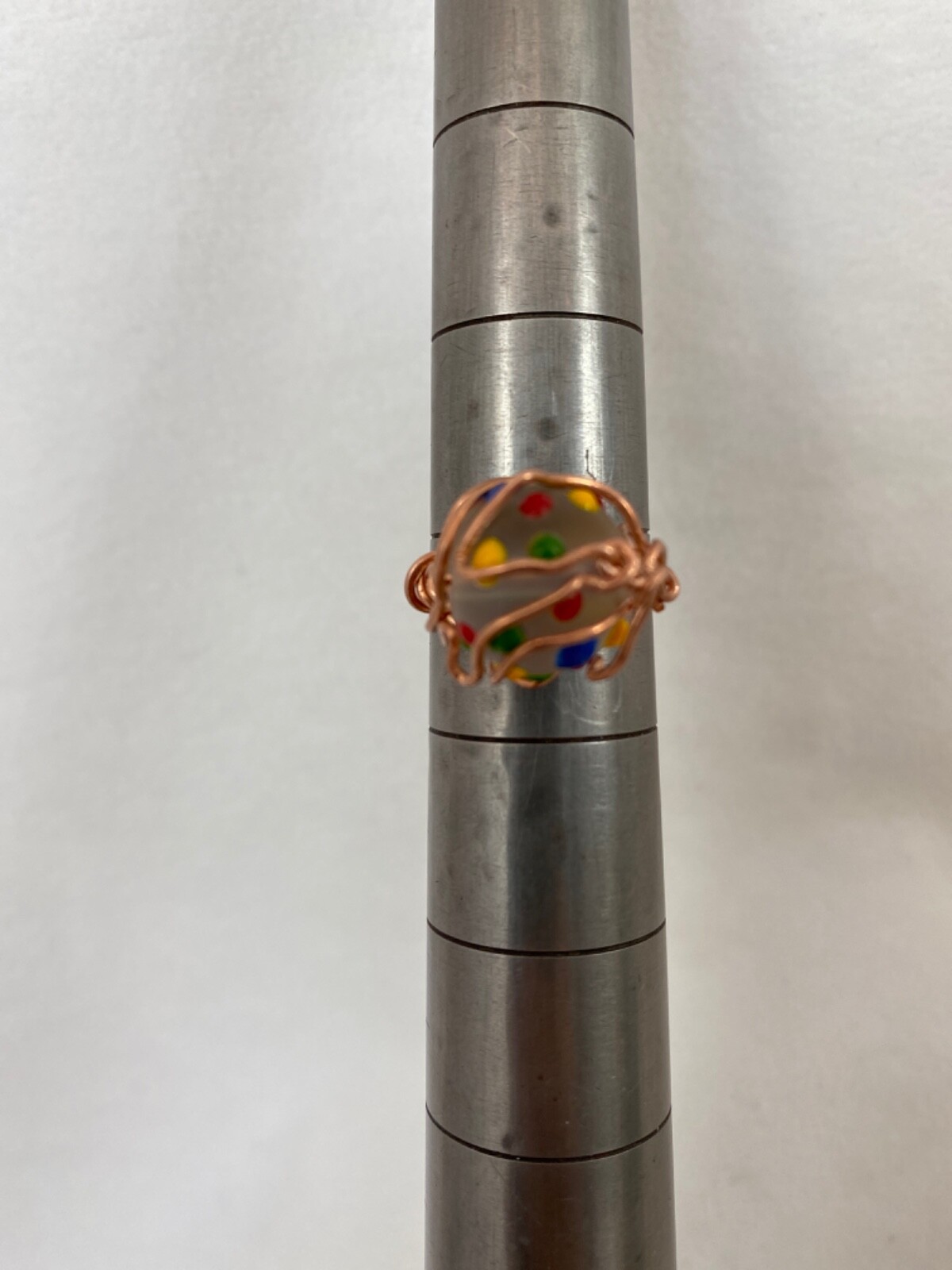 Handmade Copper Wire Wrap Glass Bead Ring Size 7 1/4 216