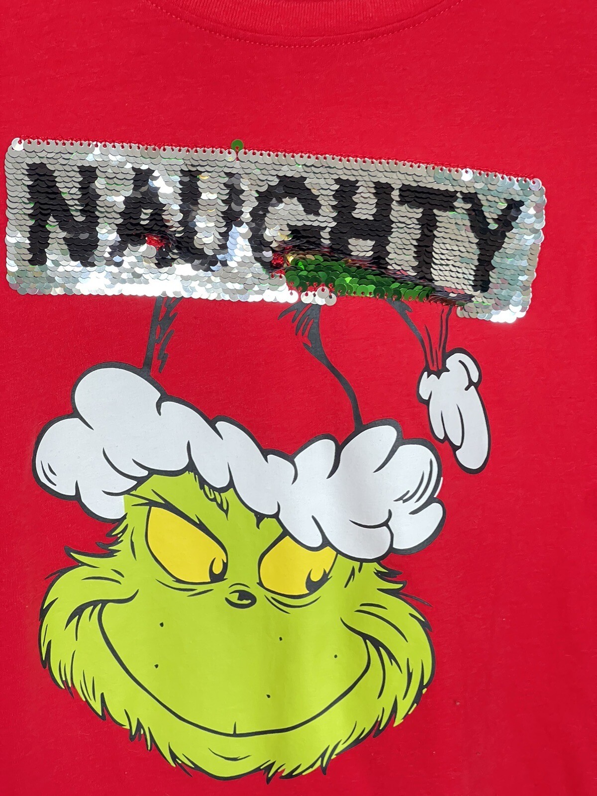 как выглядит Dr Seuss The Grinch Naughty Nice Kid Shirt Size Medium 10/12 Christmas Child фото