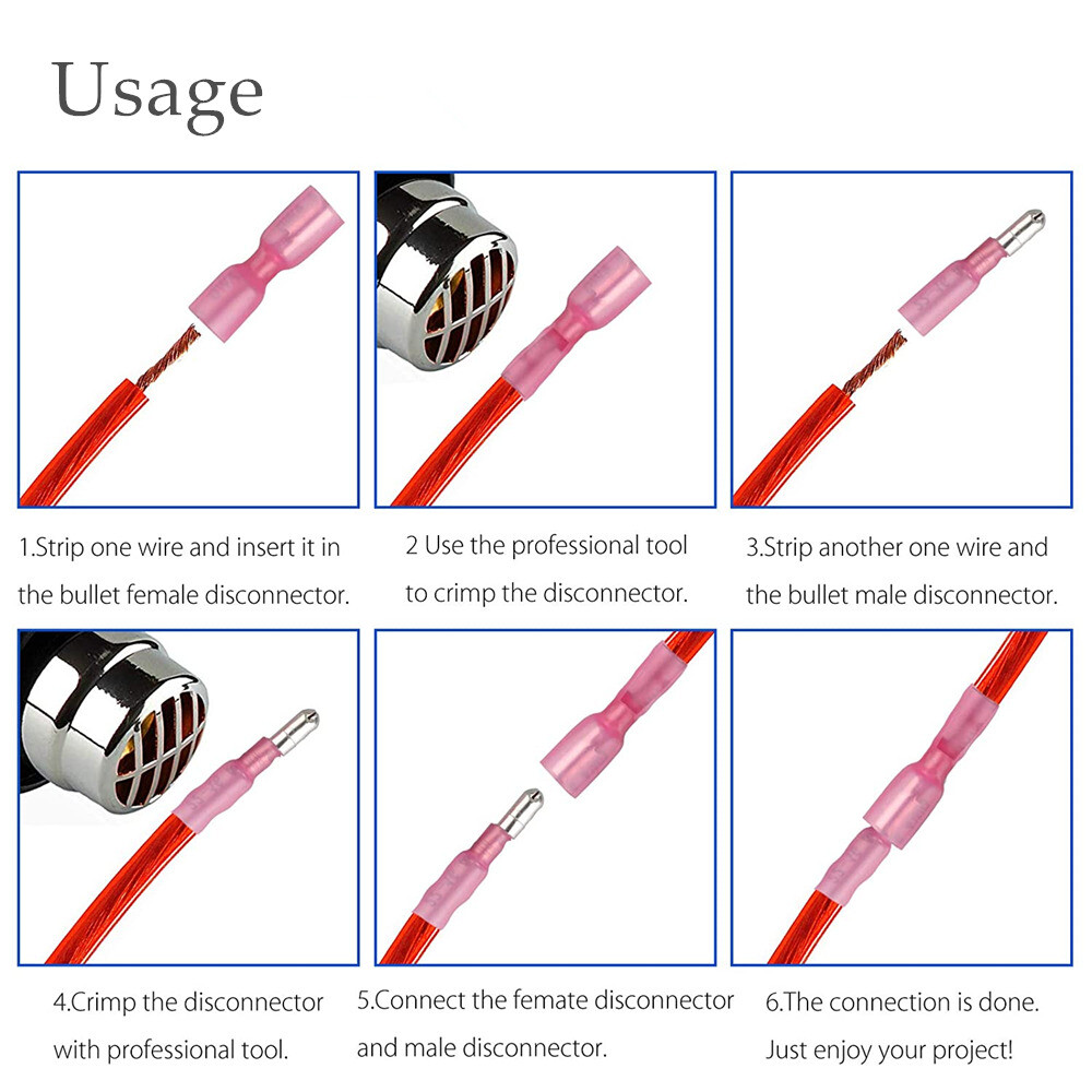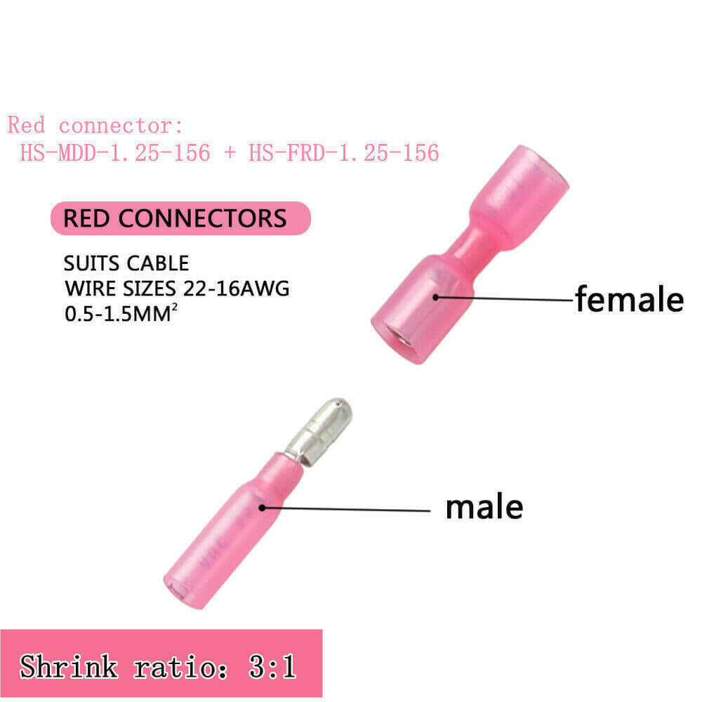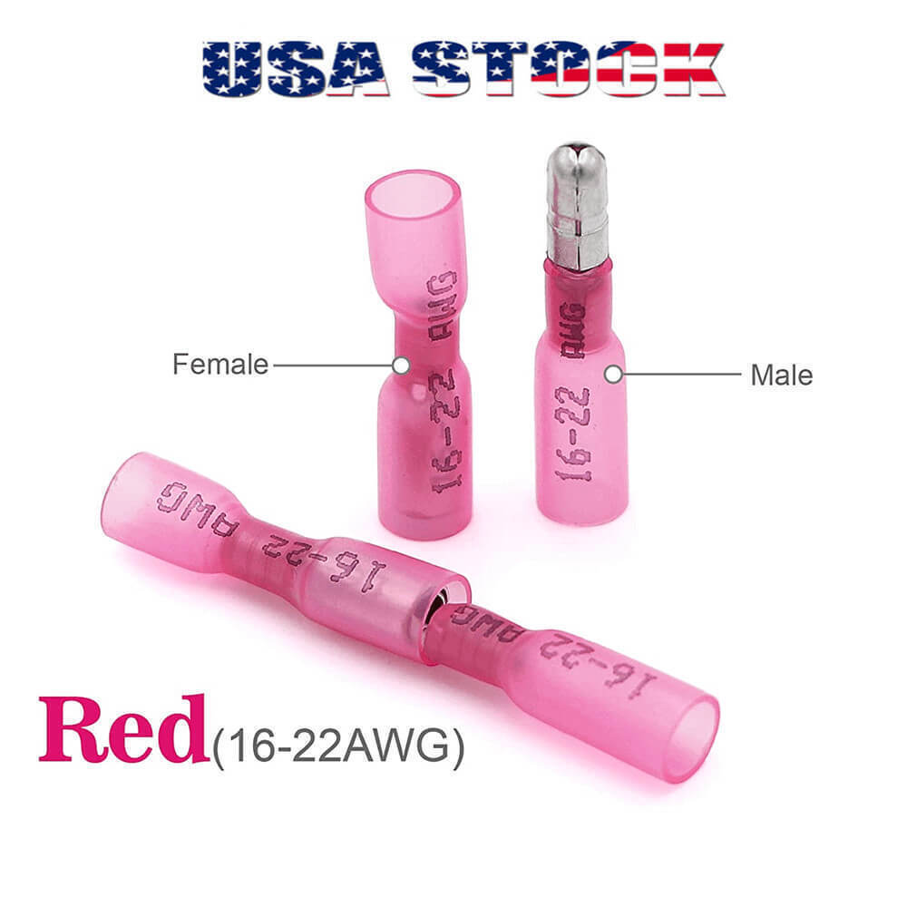 Red Heat Shrink Bullet Wire Connectors 22-16 AWG Female Male Crimp Terminals US