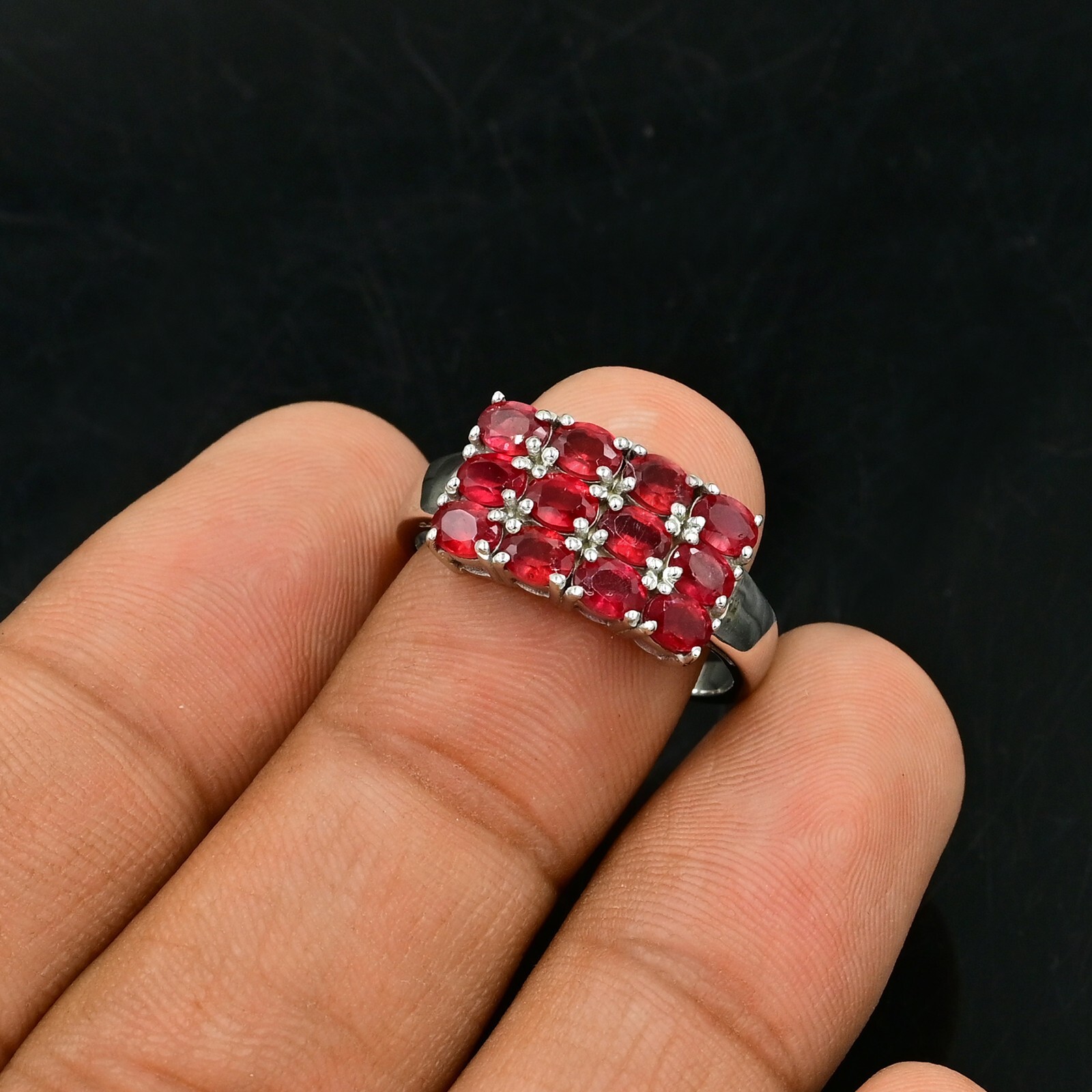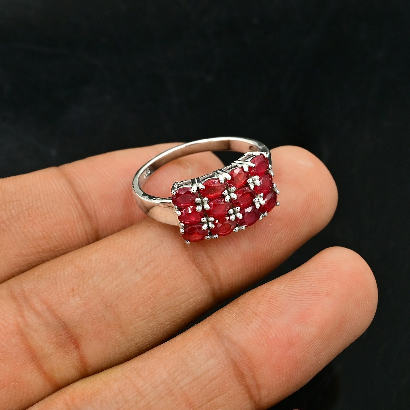 Natural Ruby Gemstone 925 Sterling Silver July Birthstone Cluster Wedding Ring