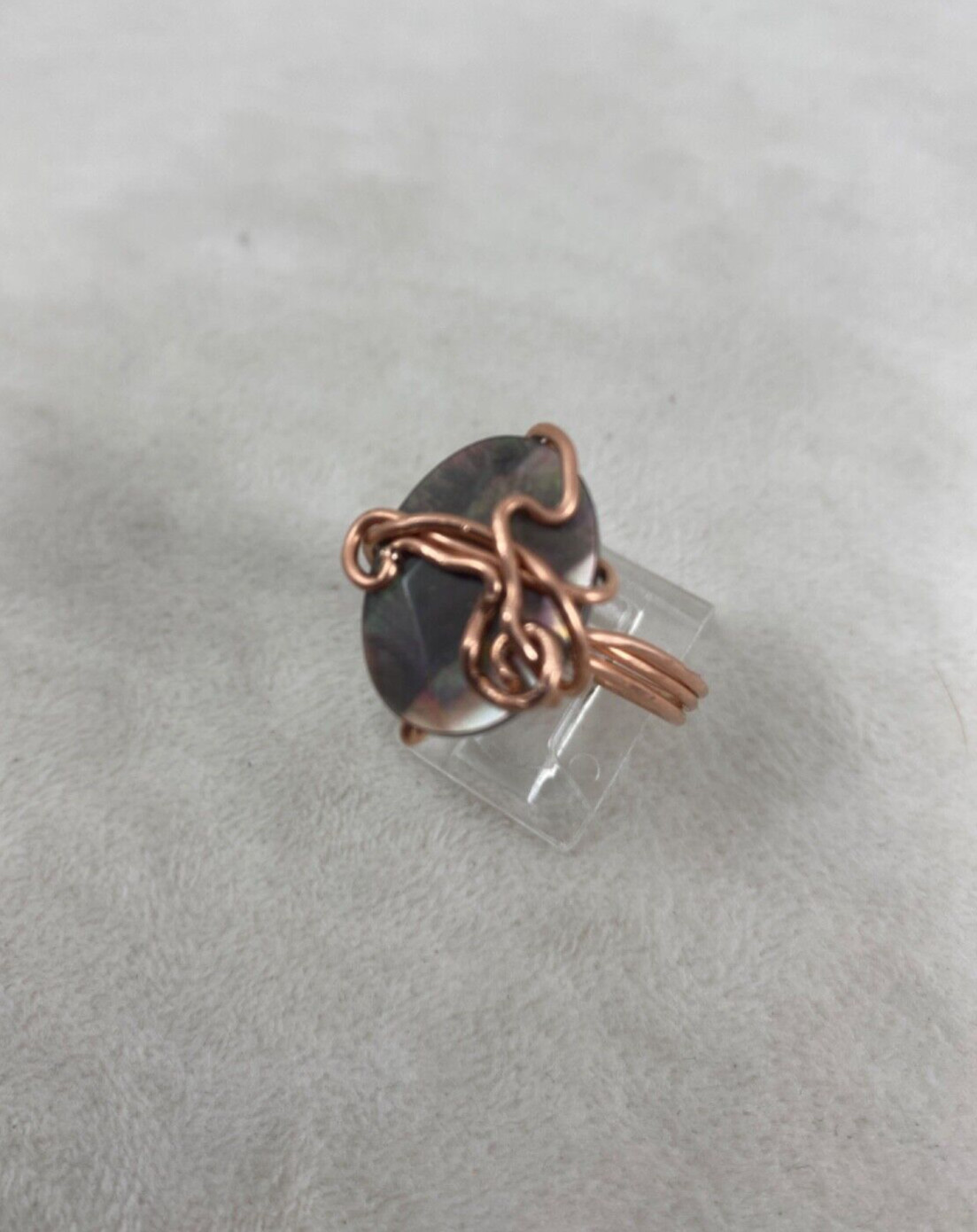 как выглядит Handmade Copper Wire Wrap Faceted Gray Mother of Pearl Ring Size 10 324 фото