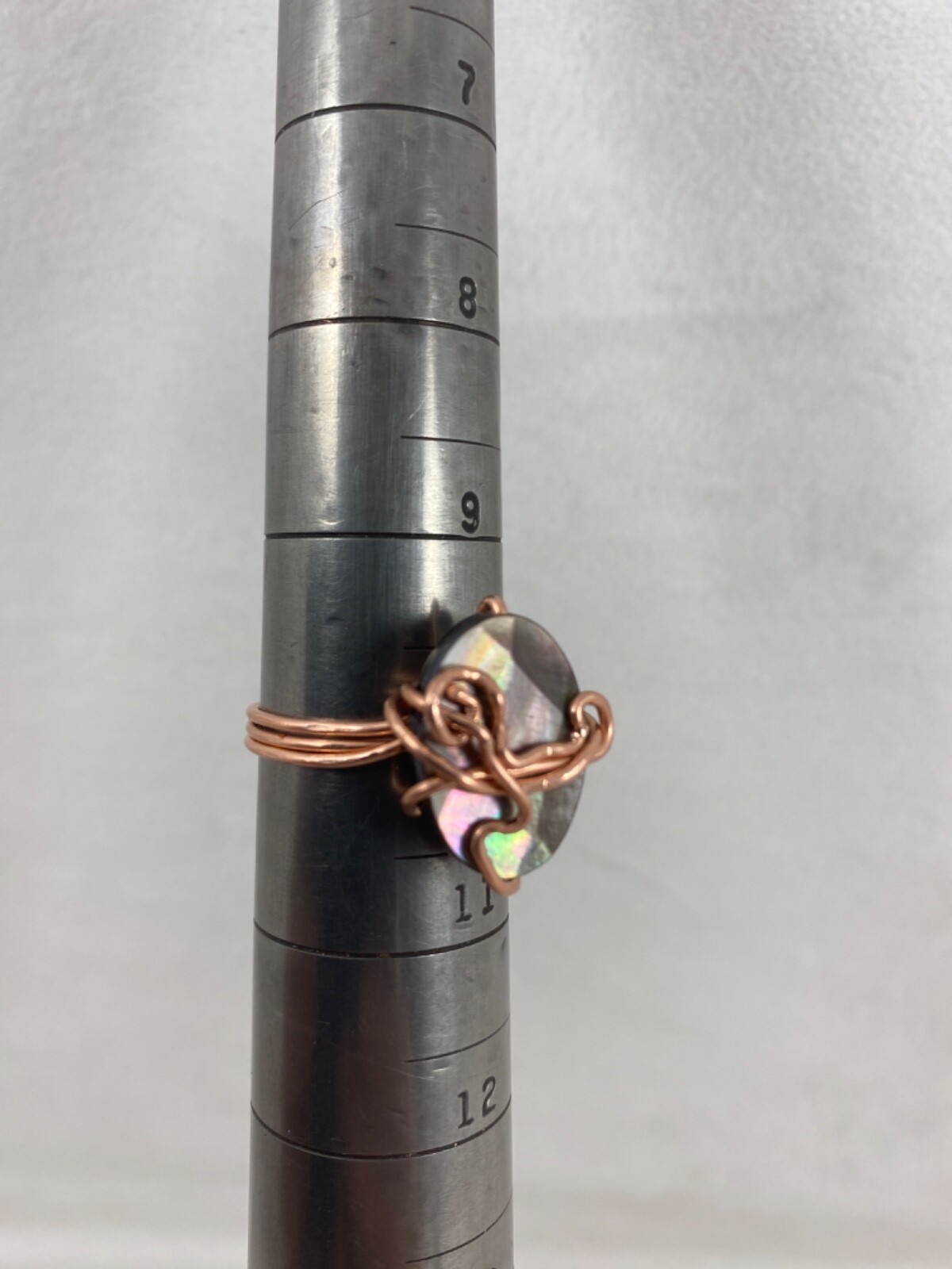Handmade Copper Wire Wrap Faceted Gray Mother of Pearl Ring Size 10 324
