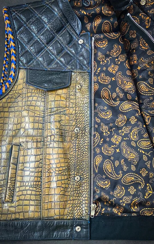 Hunt Club Style Men's Gator Leather Vest Motorcycle Biker Concealed Carry