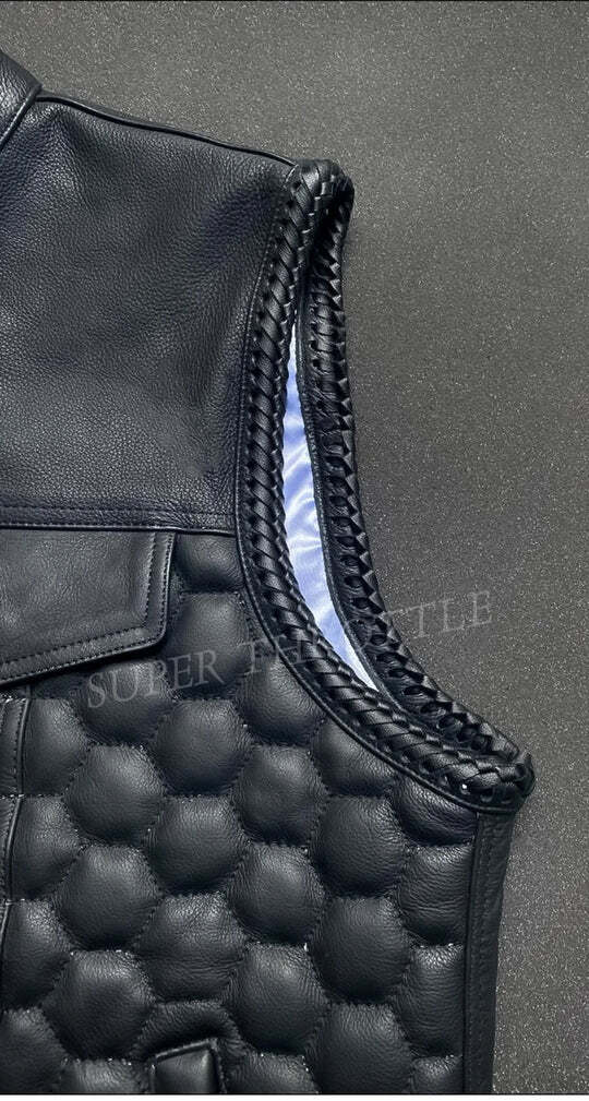 Hunt Club Mens Padded Braided Leather Vest Motorcycle Biker Concealed Carry