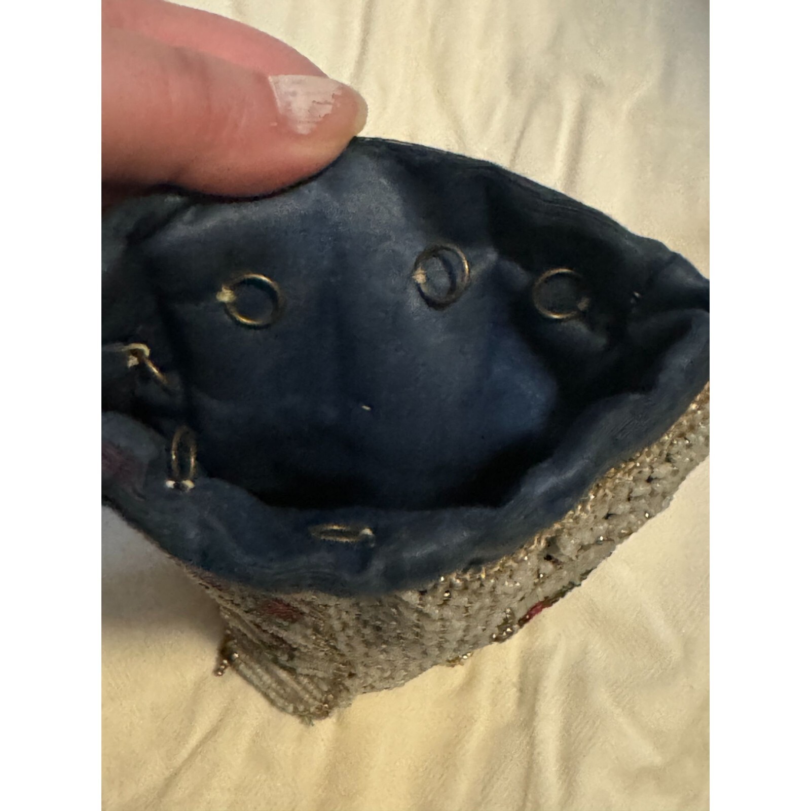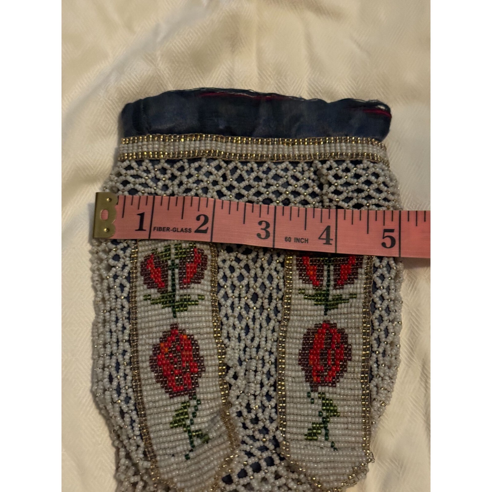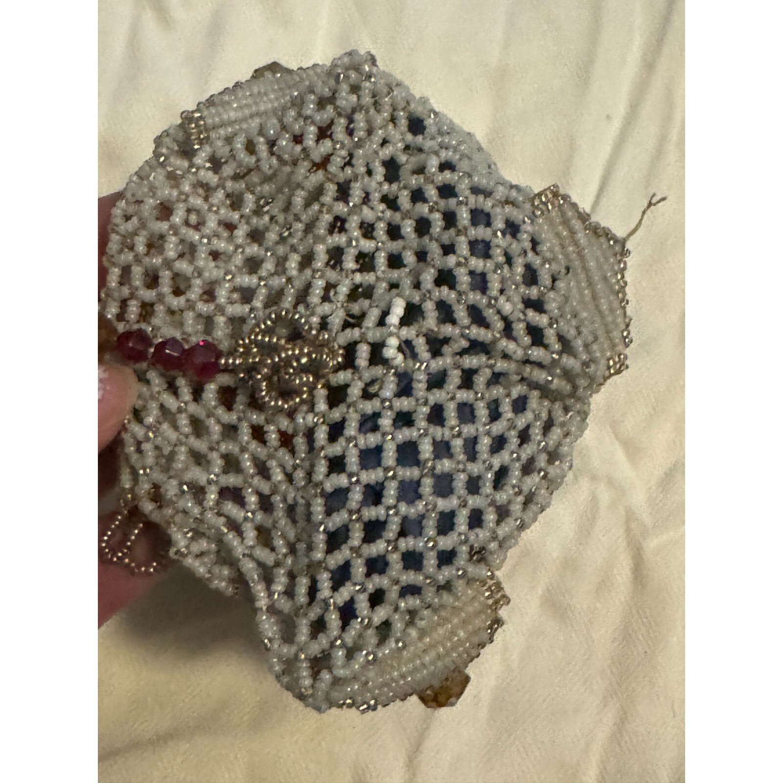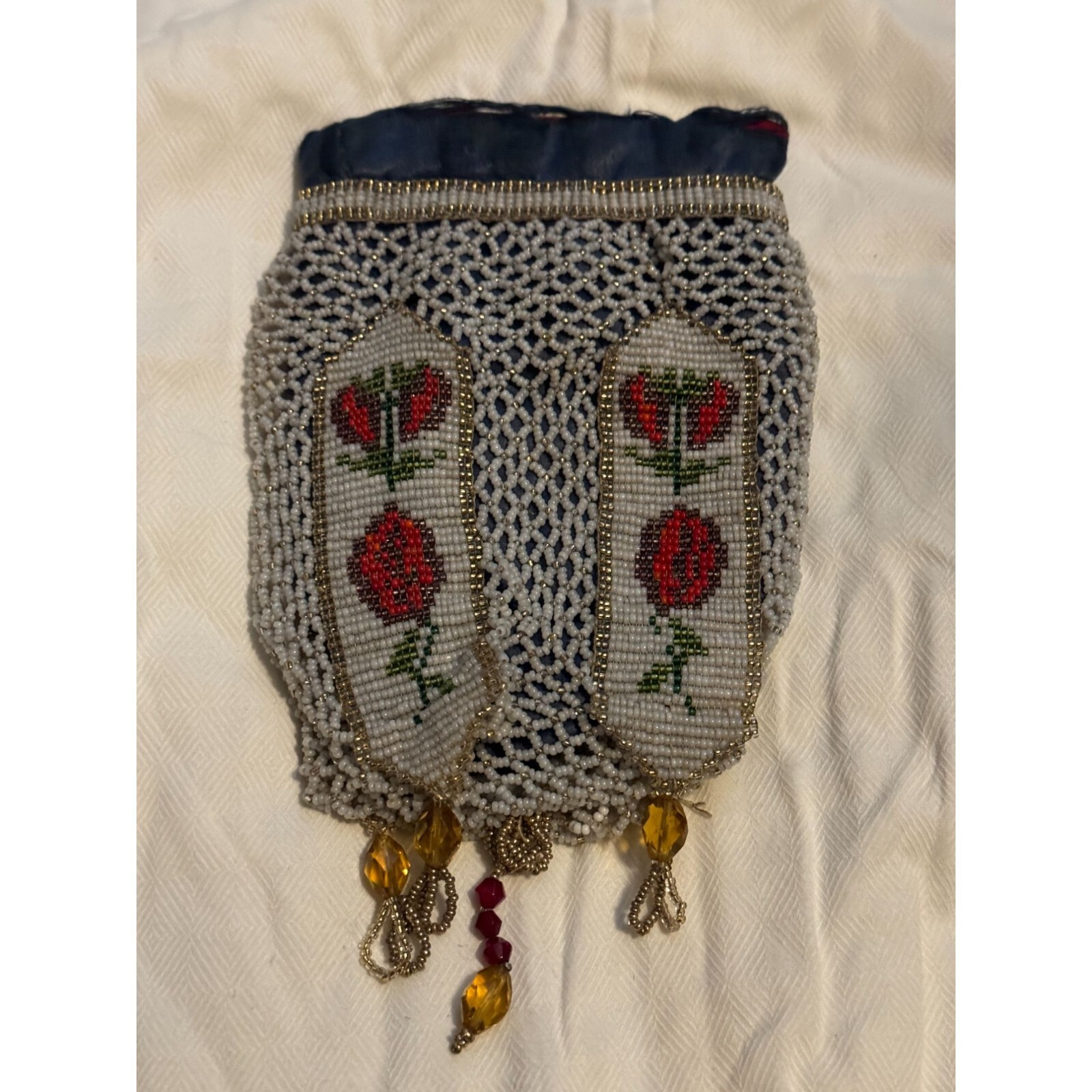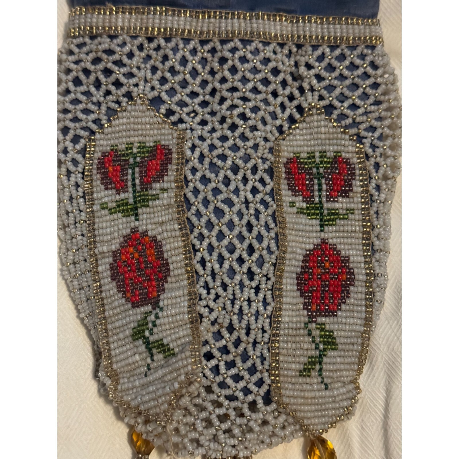 как выглядит Antique Crocheted Beaded Glass Handbag Pouch Roses -AS IS фото