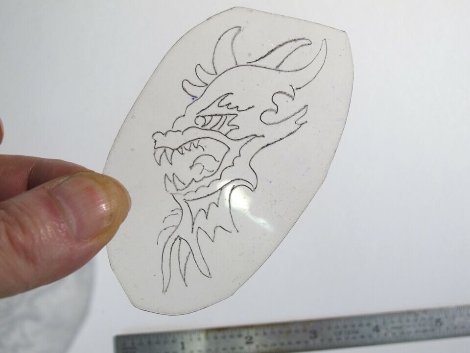 vtg 1960s 70s Tattoo Flash acetate stencil Dragon Head profile SN1