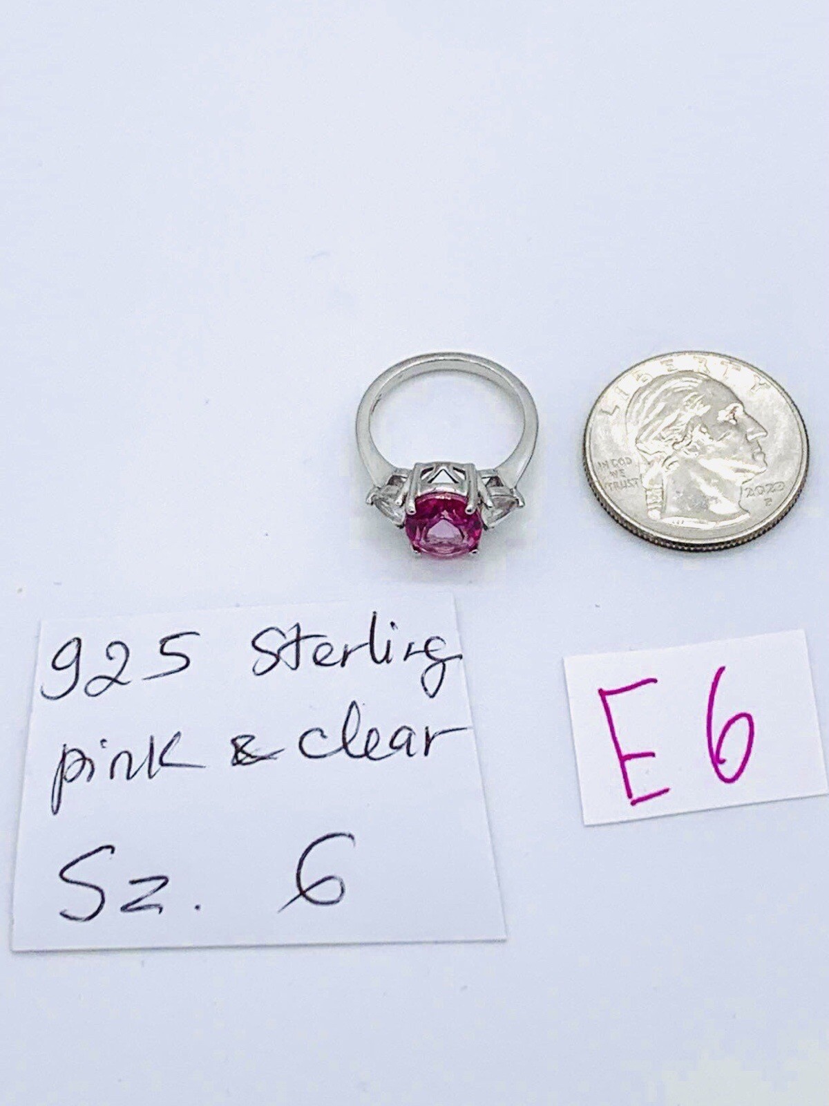 как выглядит Vtg 925 Sterling Silver Hot Pink Clear Glass Rhinestones Cocktail Ring Sz 6 фото