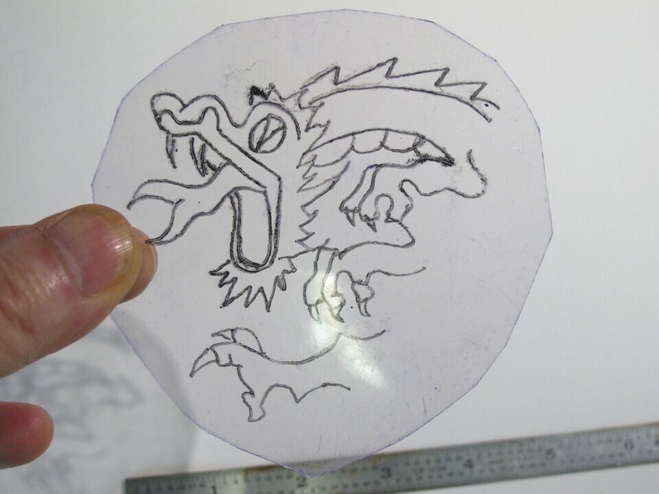 vtg 1960s 70s Tattoo Flash acetate stencil Open Mouth Dragon SN1