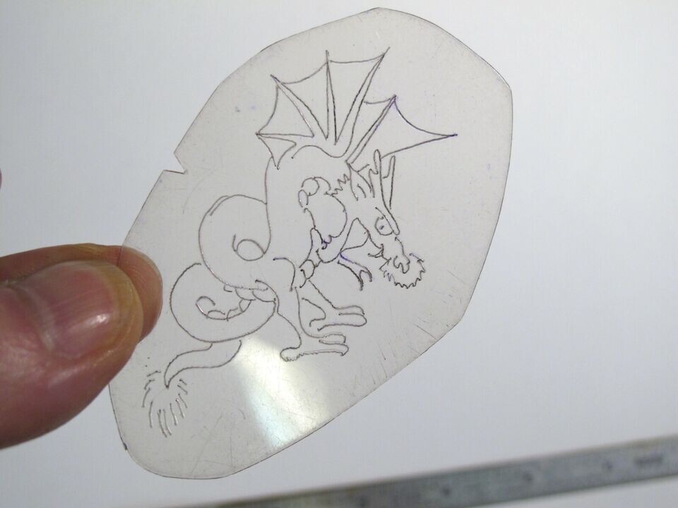 vtg 1960s 70s Tattoo Flash acetate stencil Winged Dragon v3 SN1