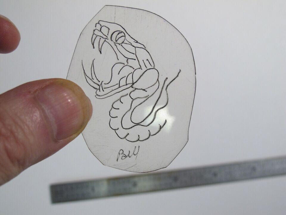 vtg 1960s 70s Tattoo Flash acetate stencil Fang Snake Head signed SN1