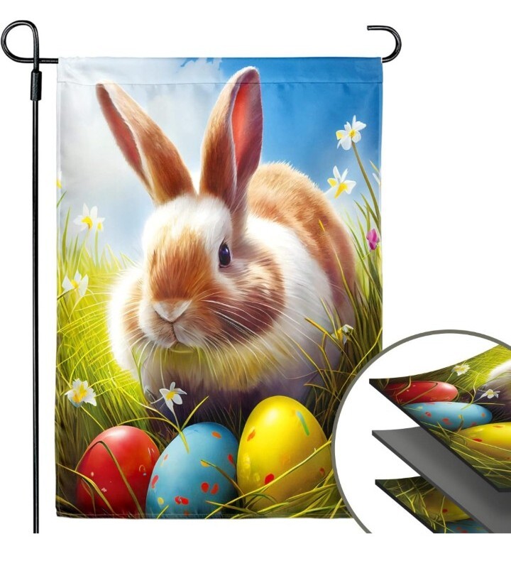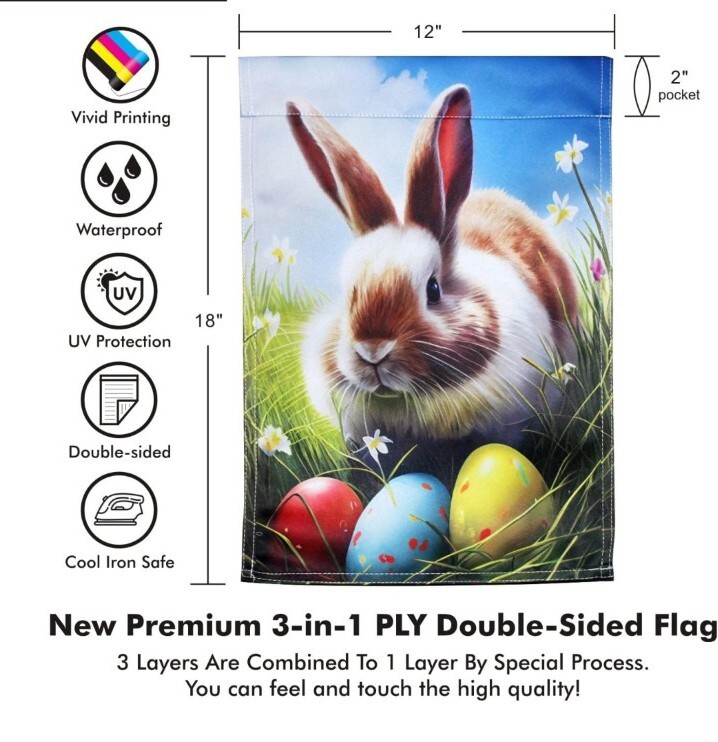 Happy Easter Decorative Garden Flag12X18 Happy Easter Sign Easter Bunny Eggs