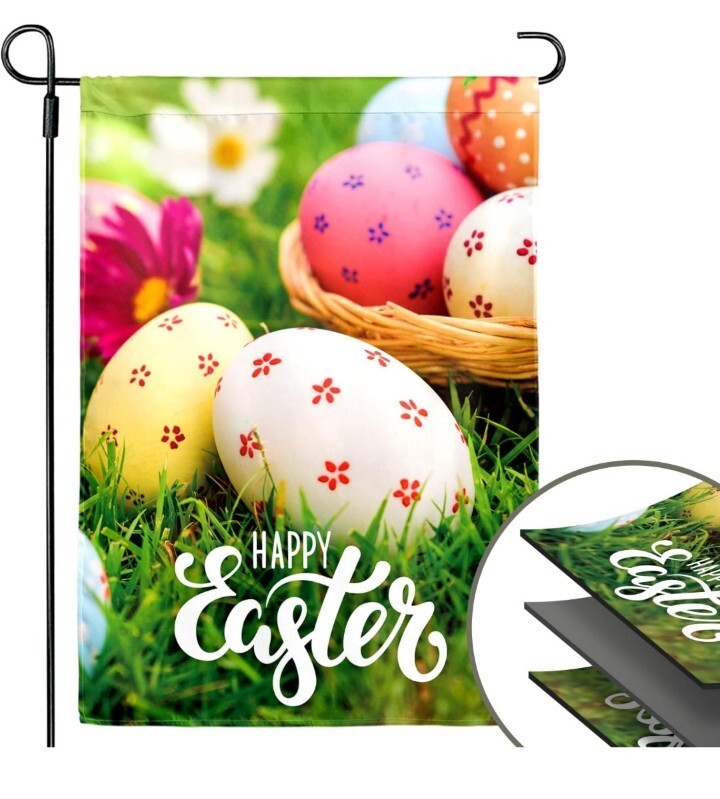 как выглядит Happy Easter Decorative Garden Flag 12"X18" Happy Easter Sign Eggs фото
