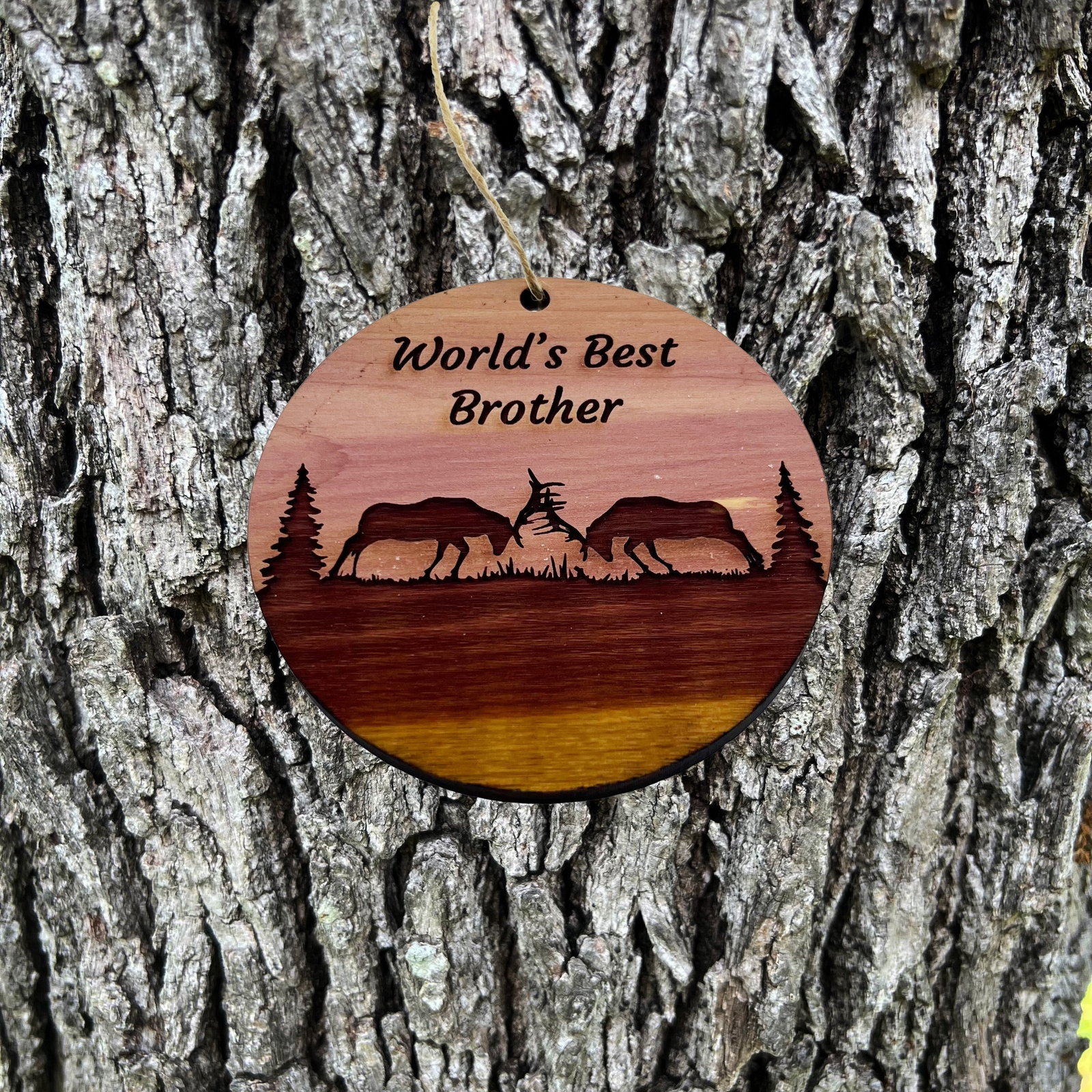 Worlds Best Brother Elk Battle - Cedar Ornament