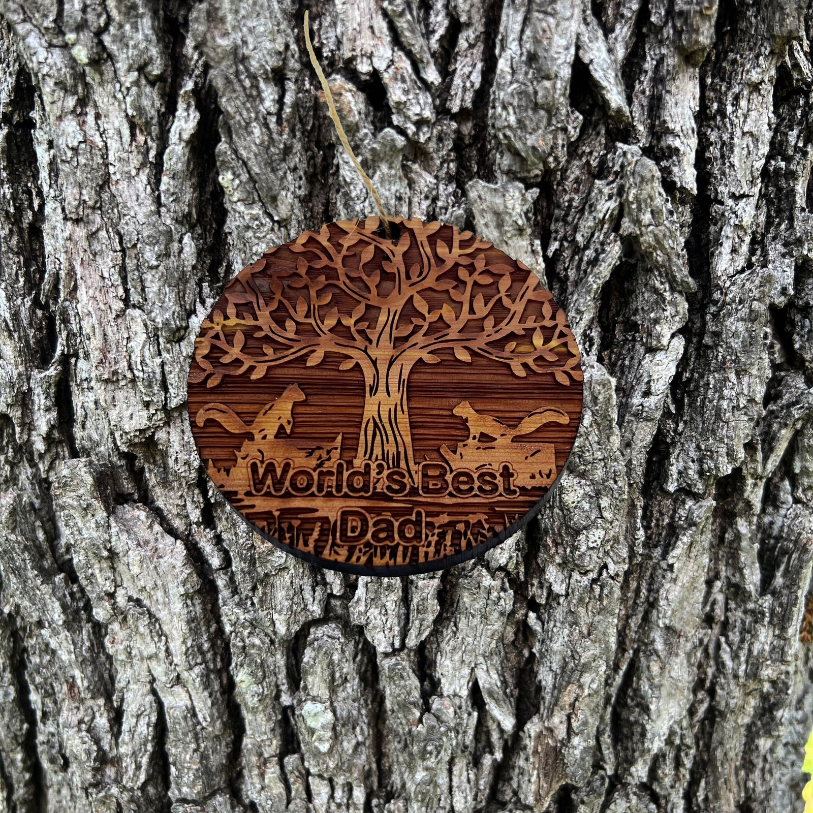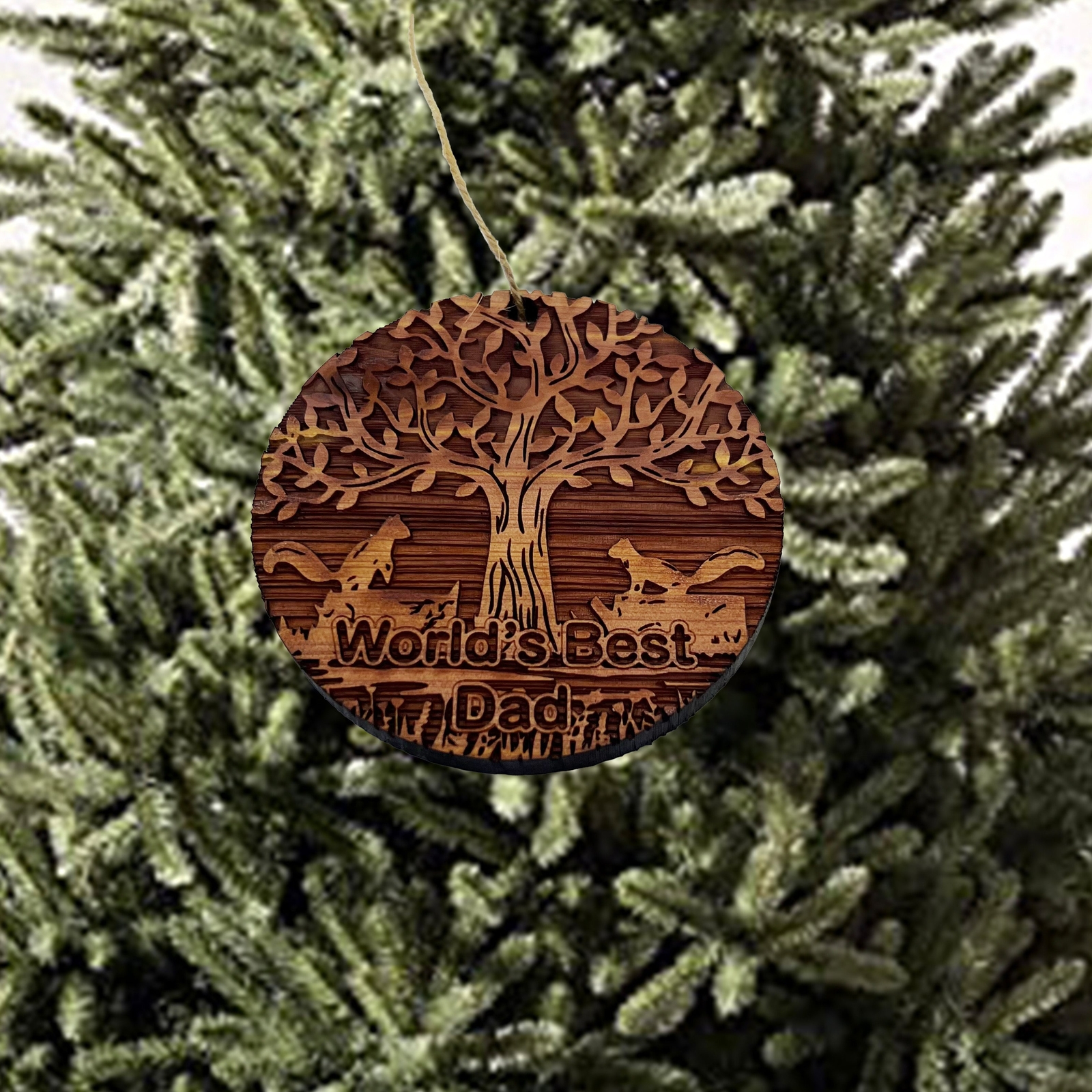 World's Best Dad Two Squirrels and Tree of Life - Cedar Ornament