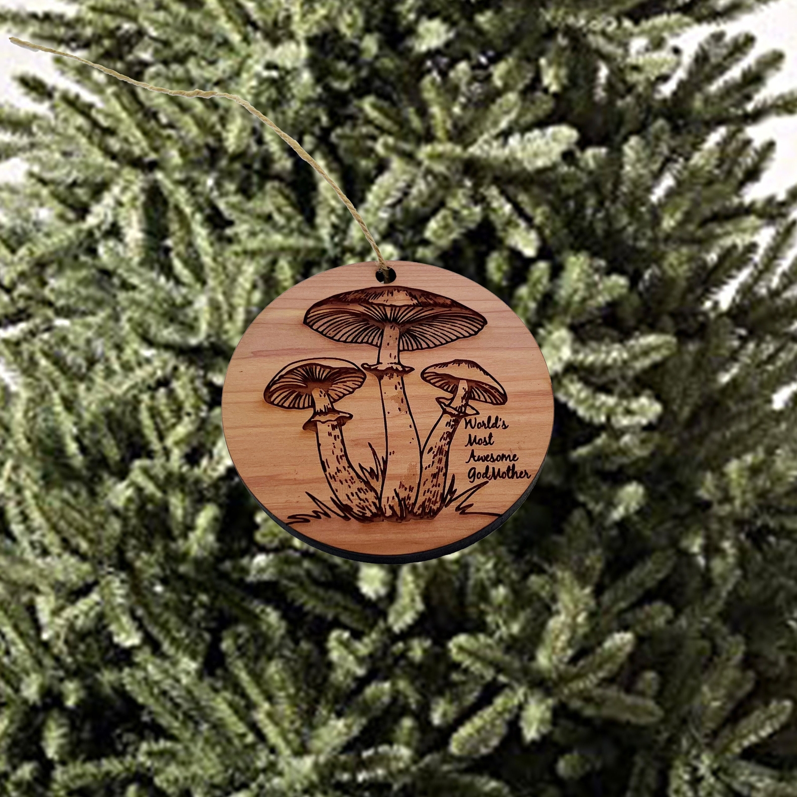 Toadstool Worlds Most Awesome GodMother - Cedar Ornament