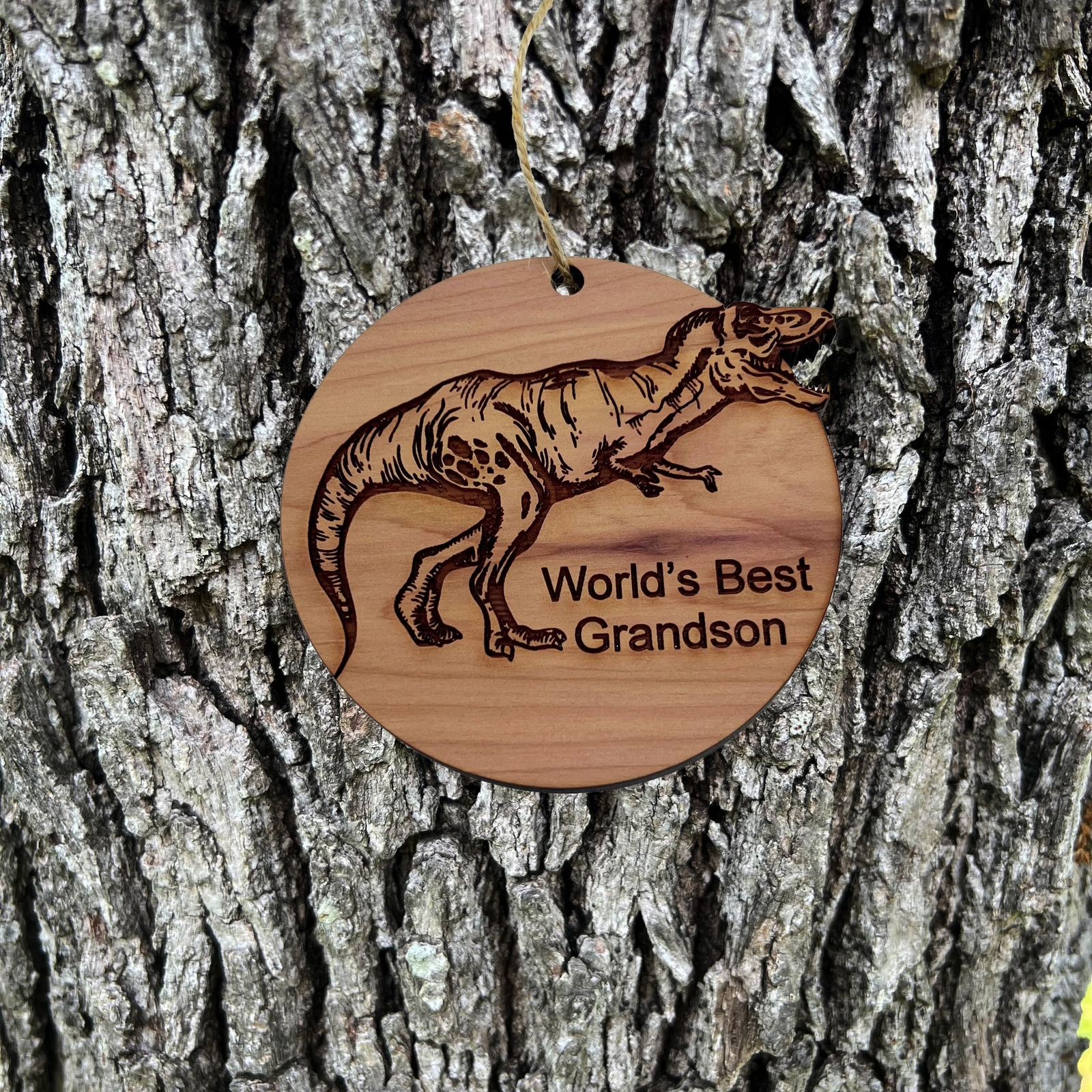 TRex Dinosaur Worlds Best Grandson - Cedar Ornament
