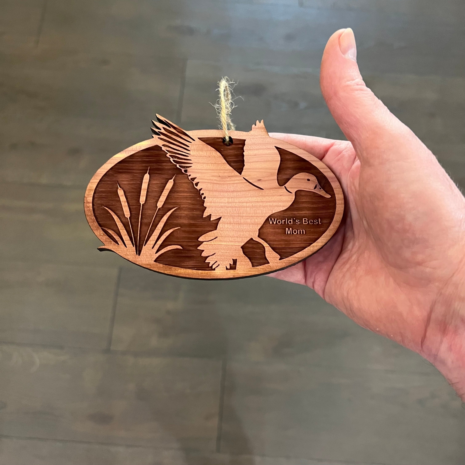 Flying Duck Worlds Best Mom - Cedar Ornament