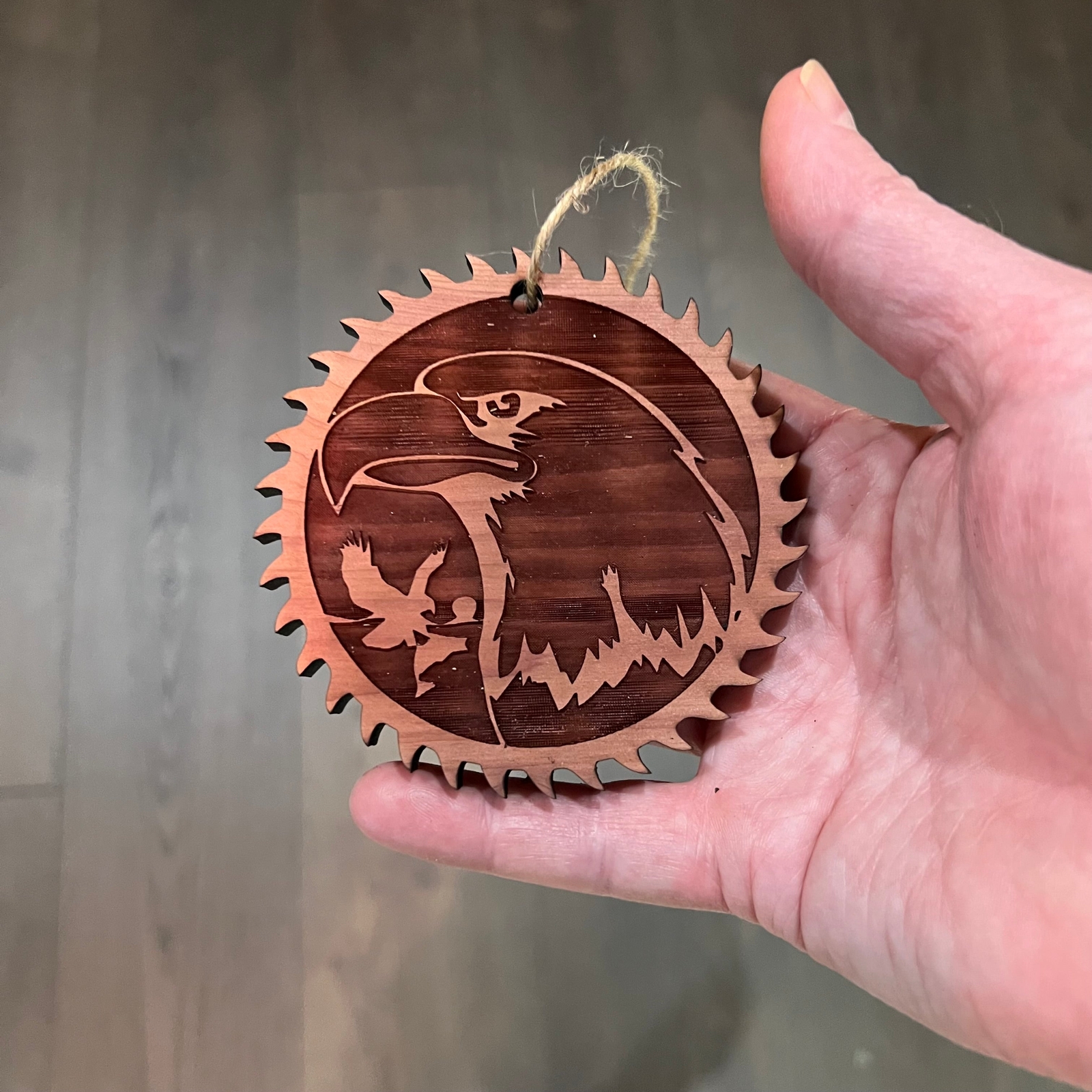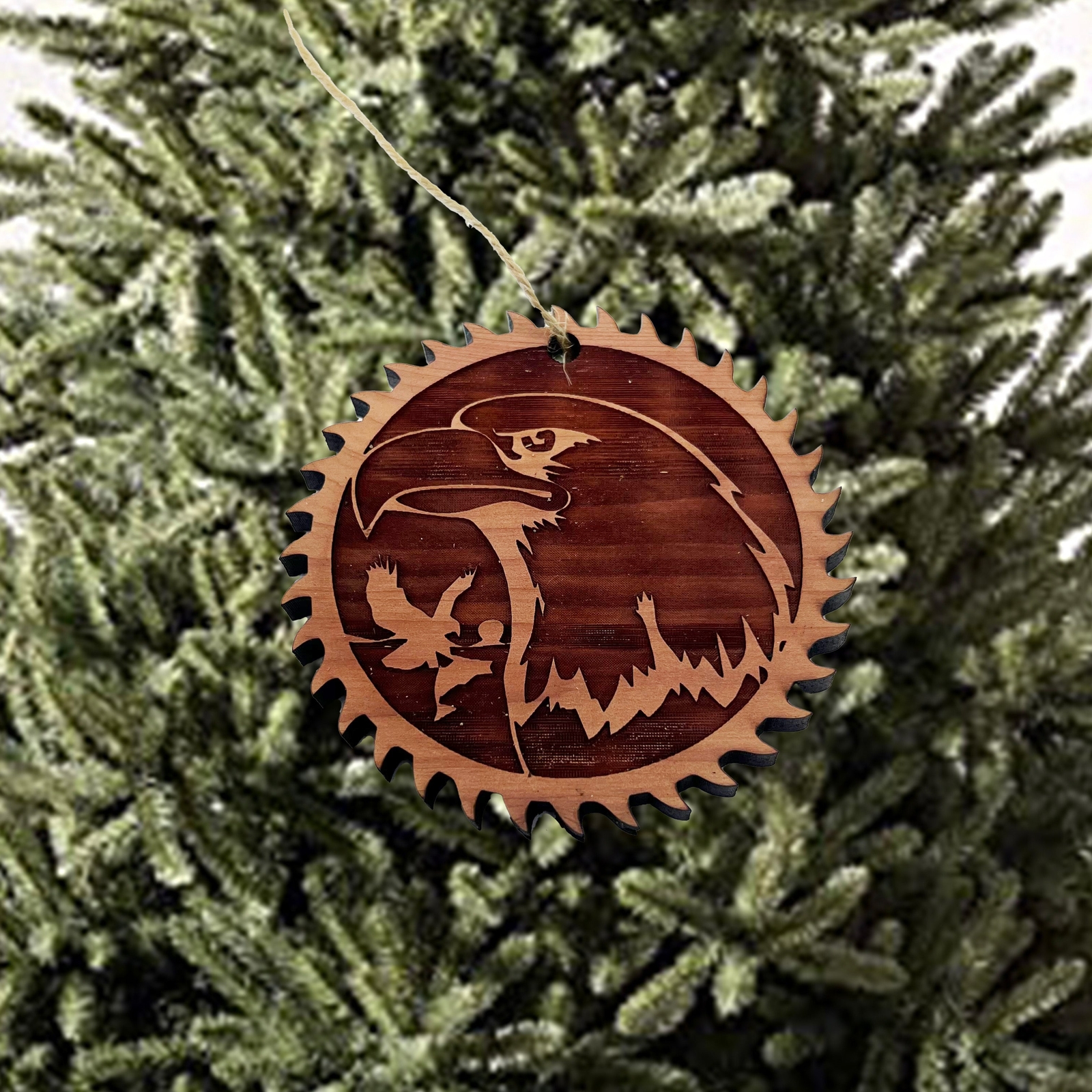 Sawblade with Eagle - Cedar Ornament