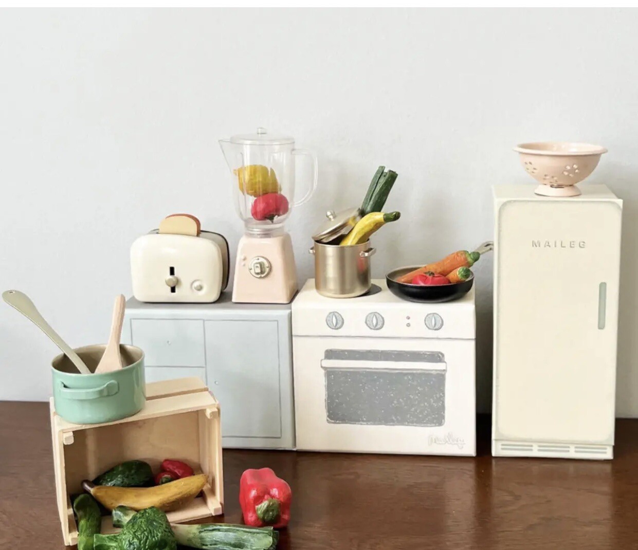 как выглядит NEW Maileg Oven Stove and Cooking Set Utensils фото