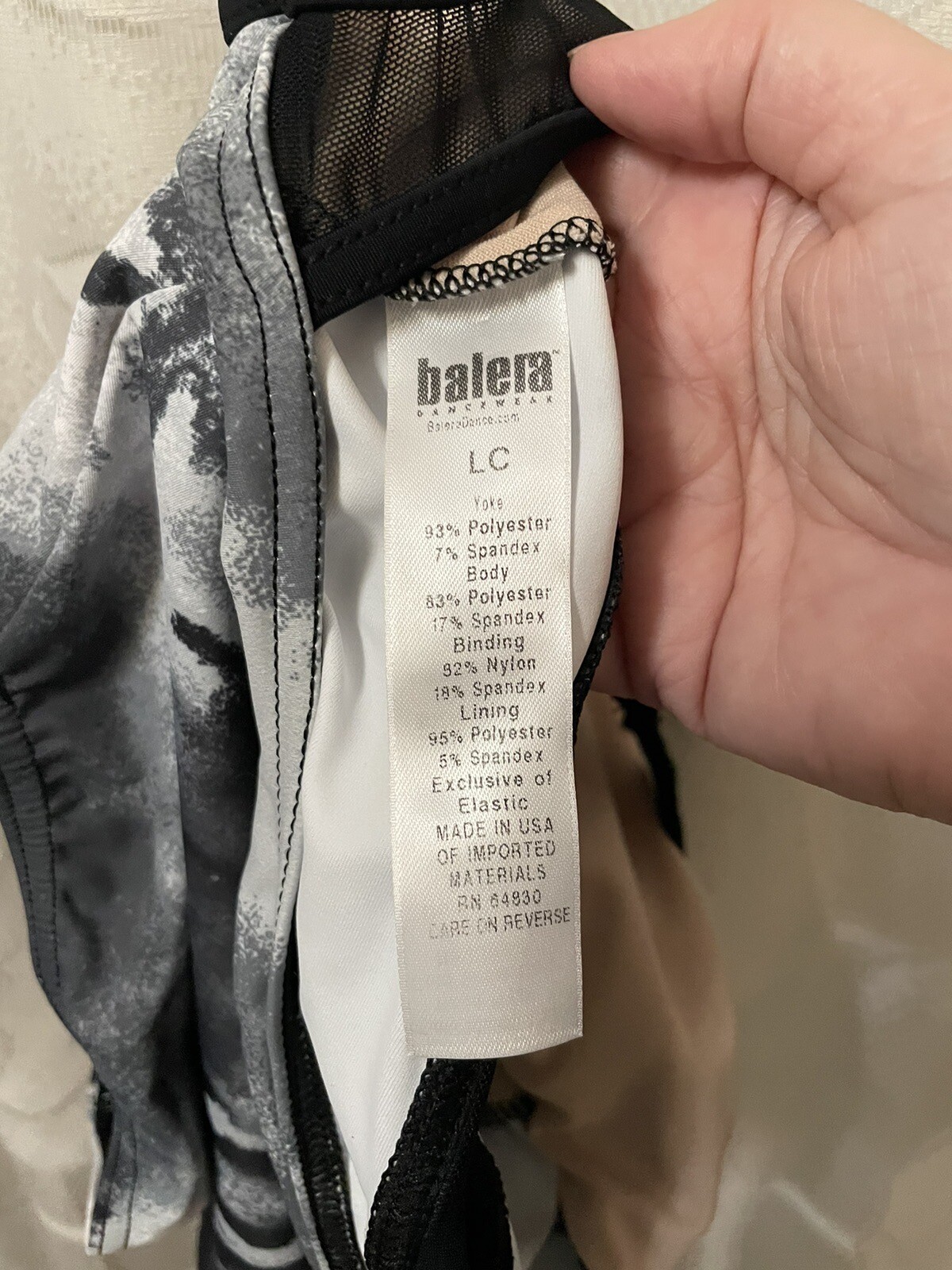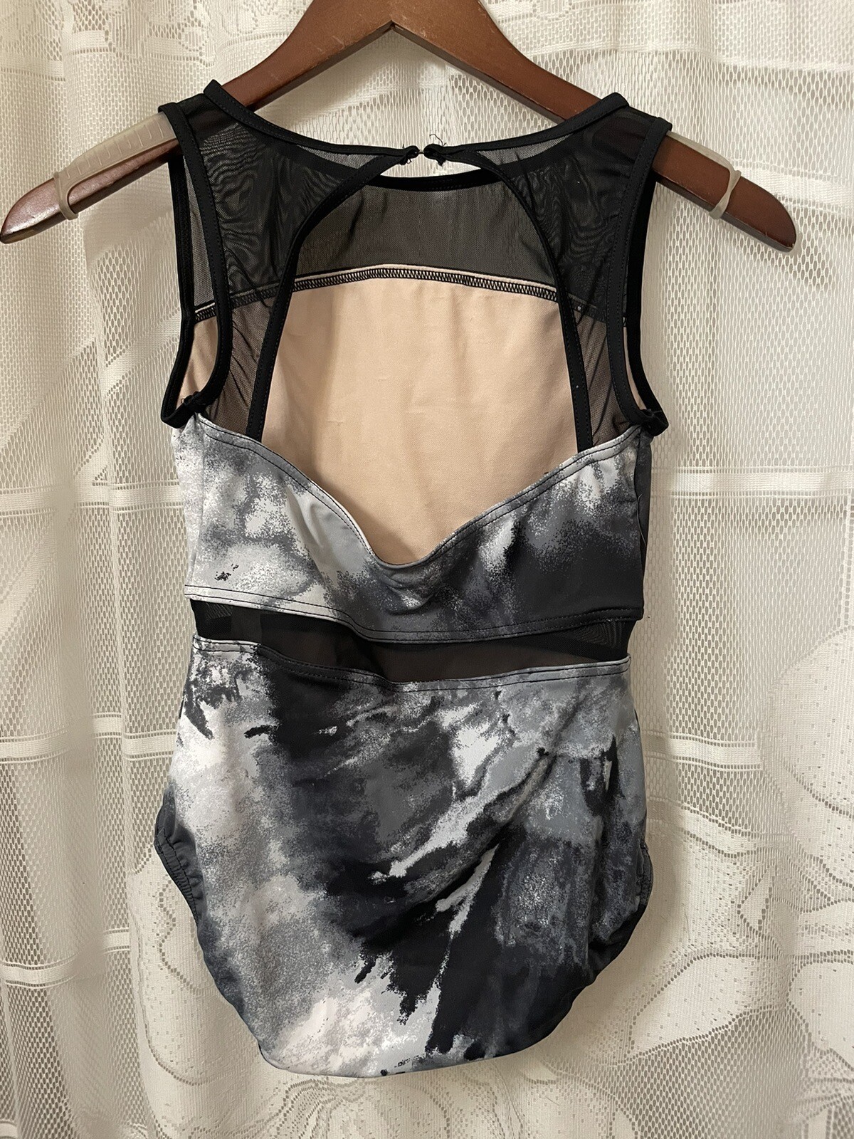как выглядит Balera Leotard Dance LC Strappy Mesh Middle Tie Dye Black Gray White Lrg Child фото