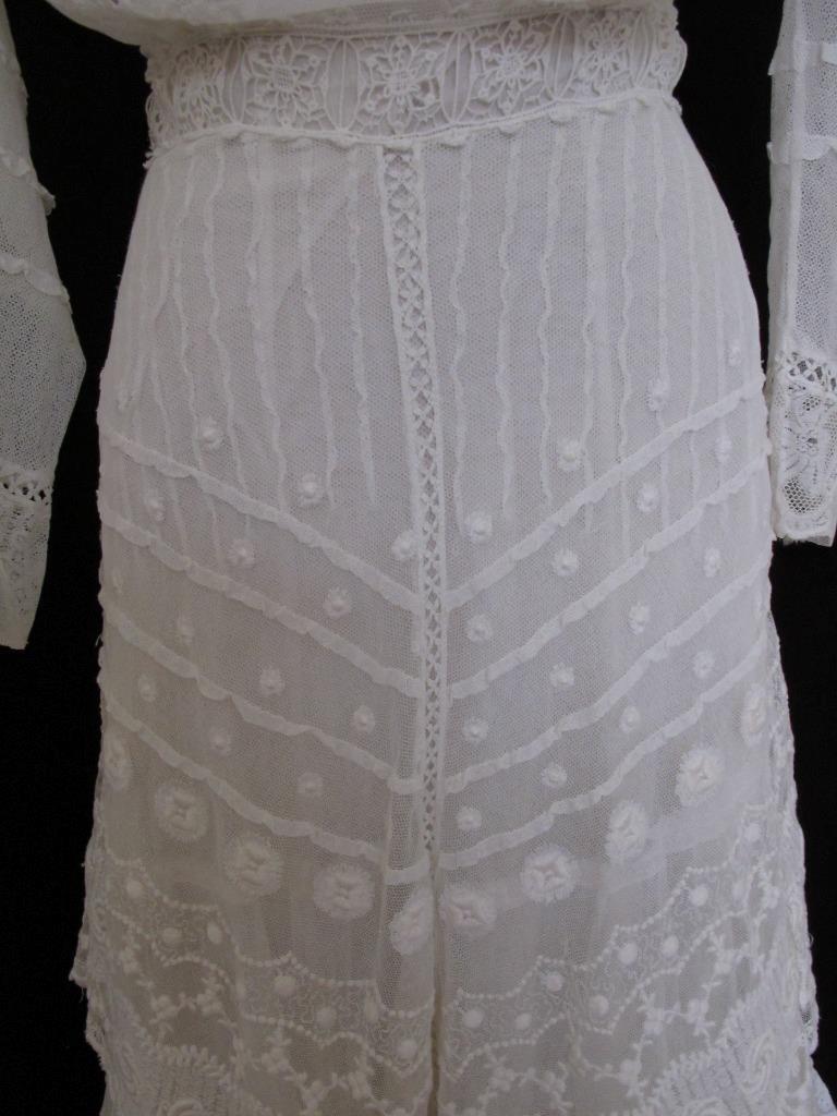как выглядит Antique Edwardian White Embroidered Mesh Dress XXS Pouter Pigeon Waist Overskirt фото