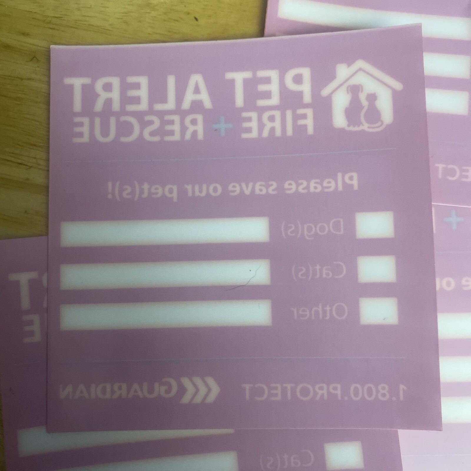 Pets Inside Alert - Fire Rescue - Emergency - Fire Window Stickers / 4 Pack