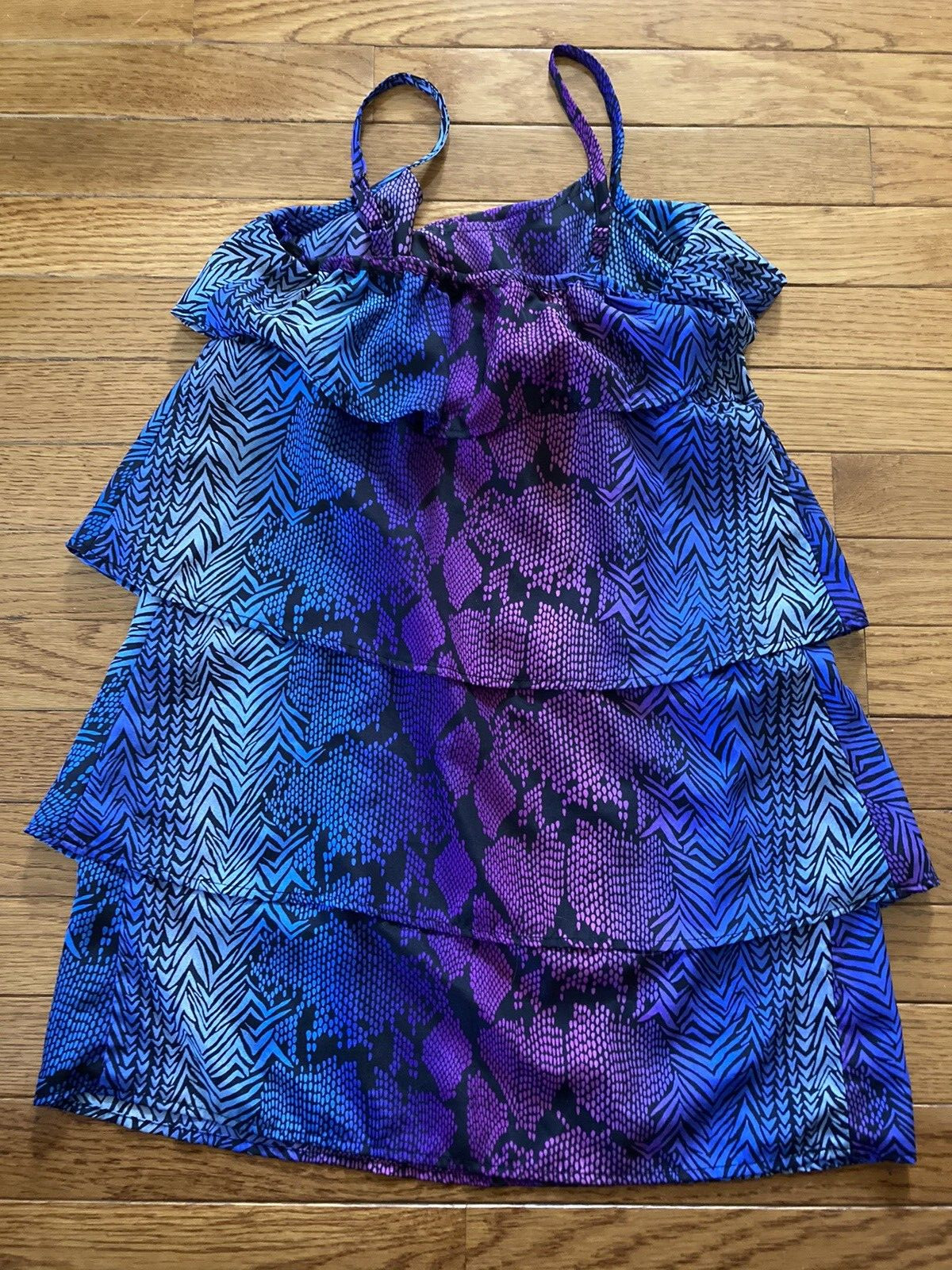 Girl's P.S. Blue Purple Spaghetti Strap Tiered Dress Sz. 10