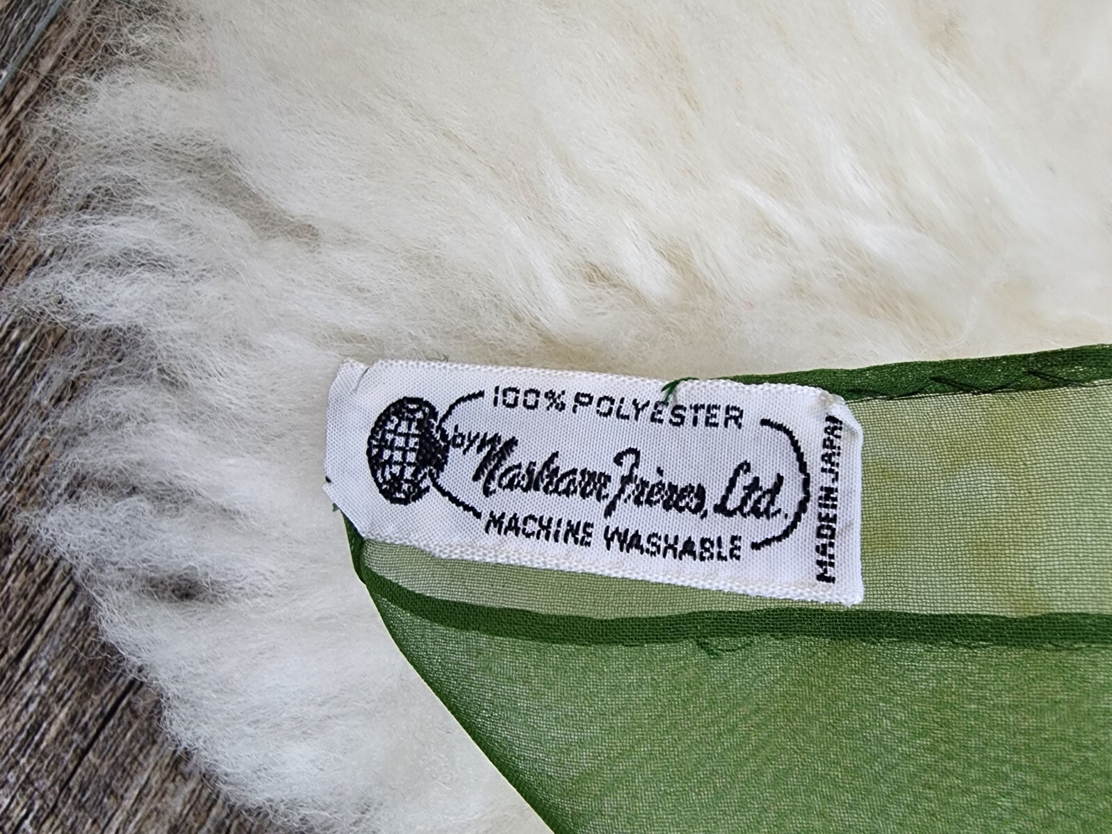 Vintage 1960 Nasharr Freres Scarf Lot Green and Yellow Made In Japan, Polyester