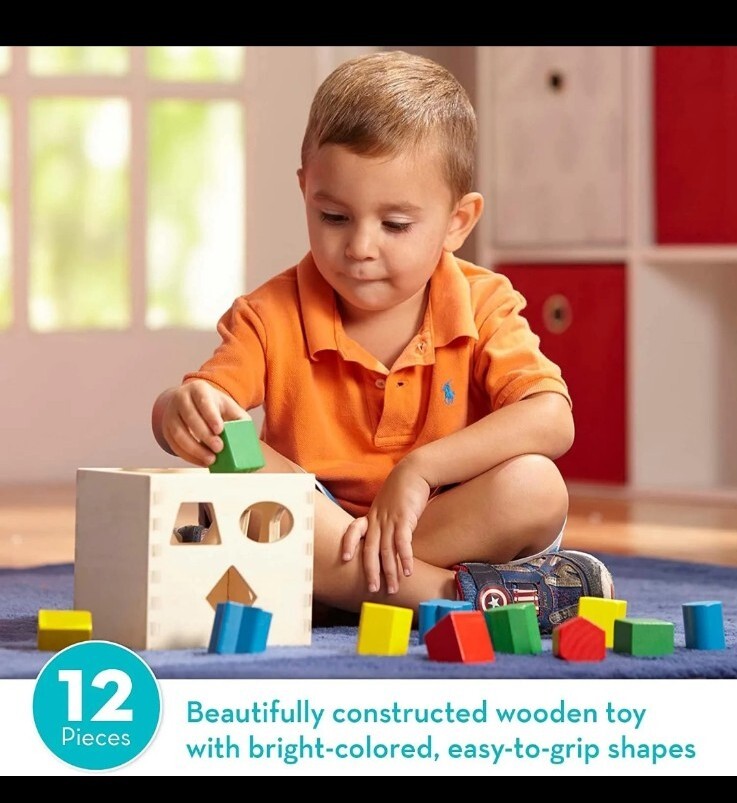 Melissa Doug Shape Sorting Cube - Wooden Toy with 12 Shapes , 4 Colors NEW