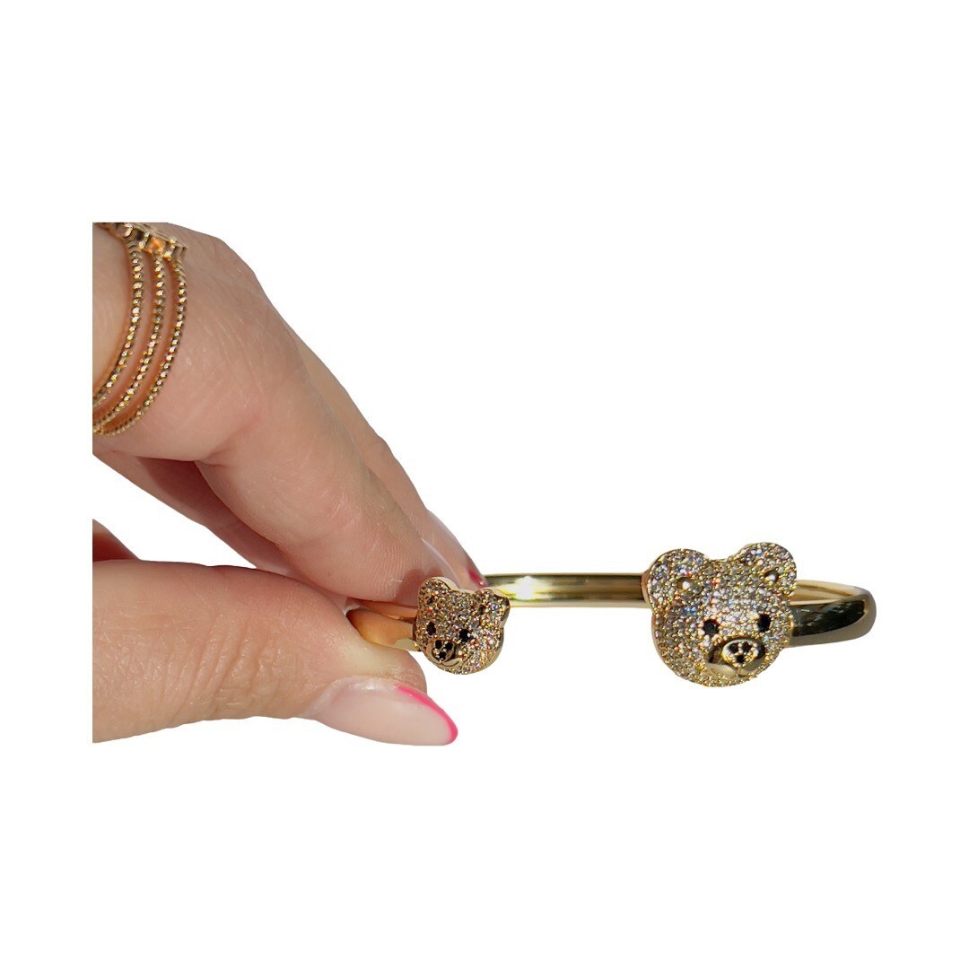 Teddy Bear Bangle, Open Cuff Bangle, Gold Bracelet