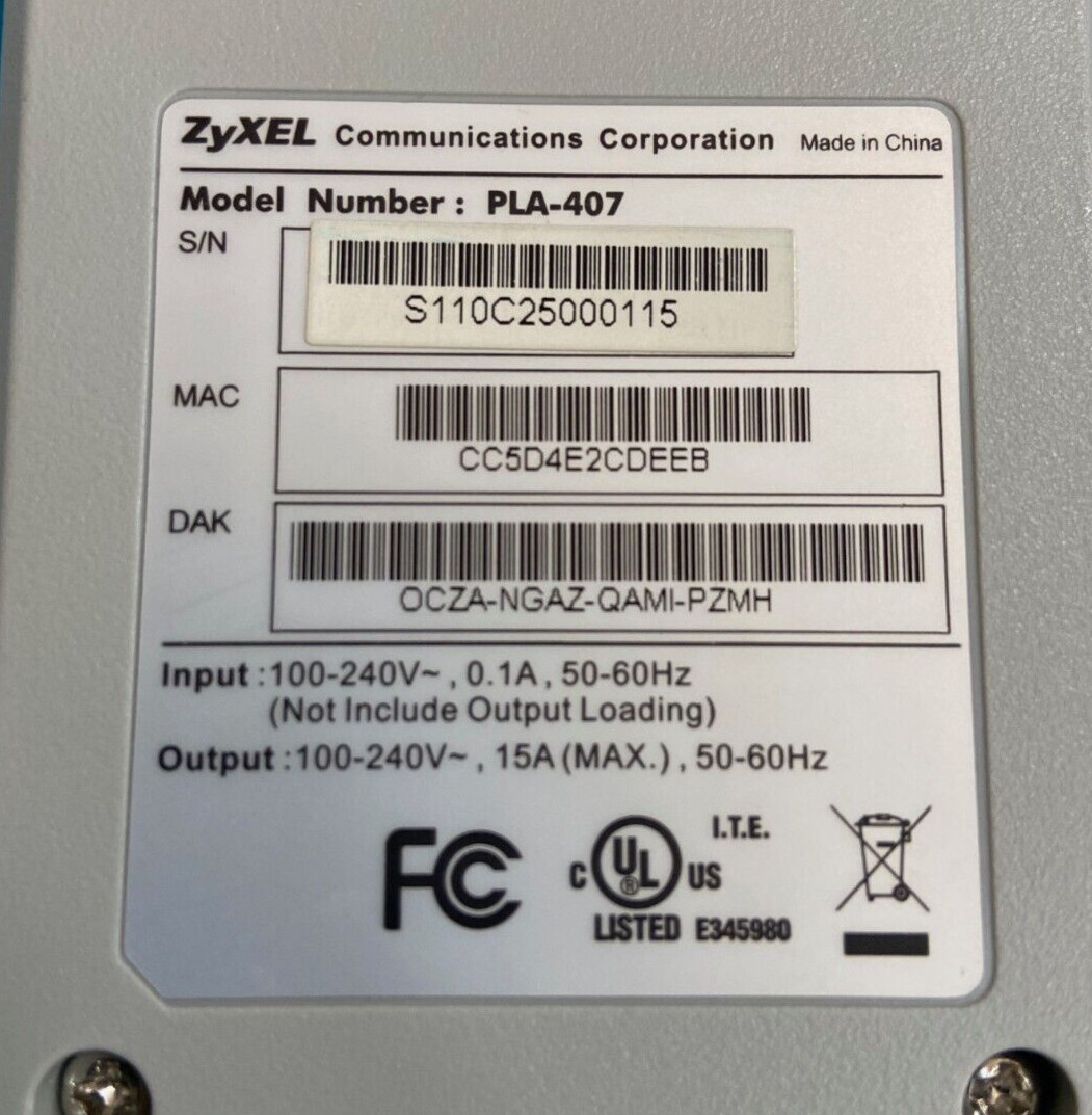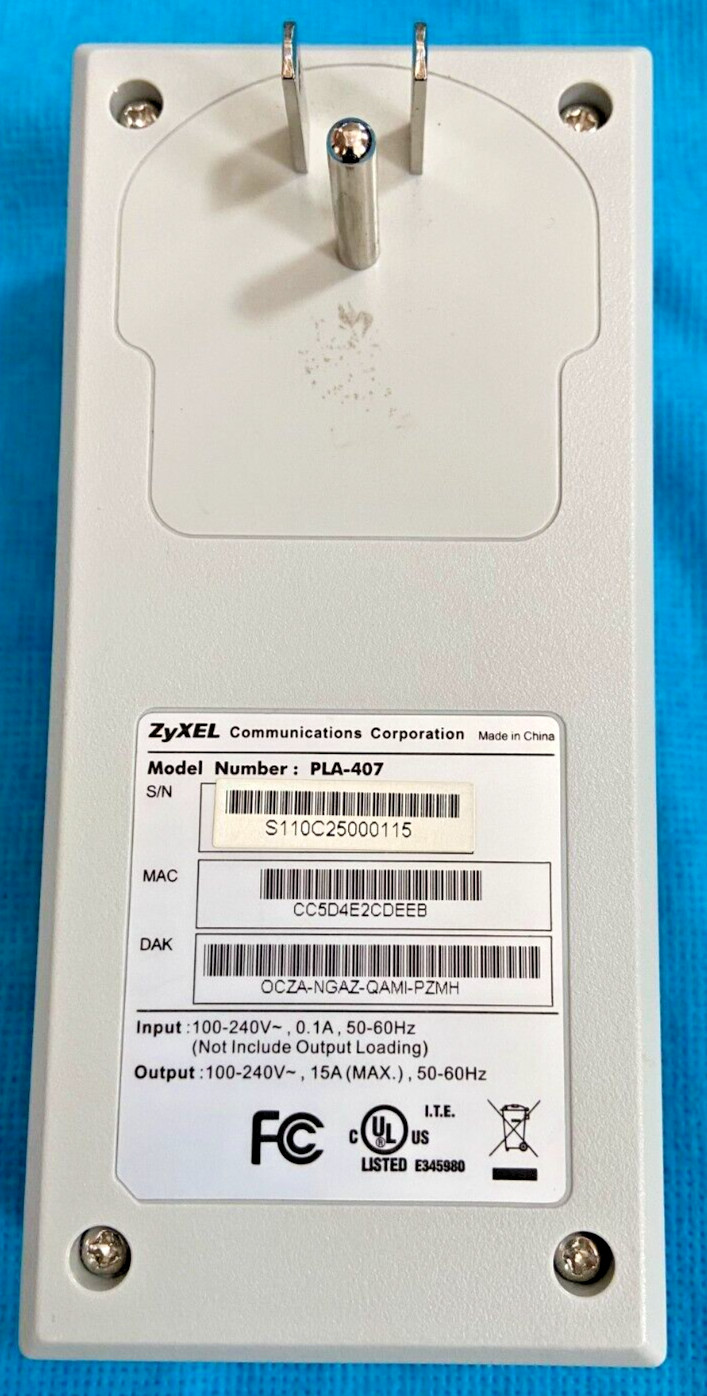 Single ZyXEL Powerline Pass-Thru Ethernet Adapter PLA-407 200Mbps White