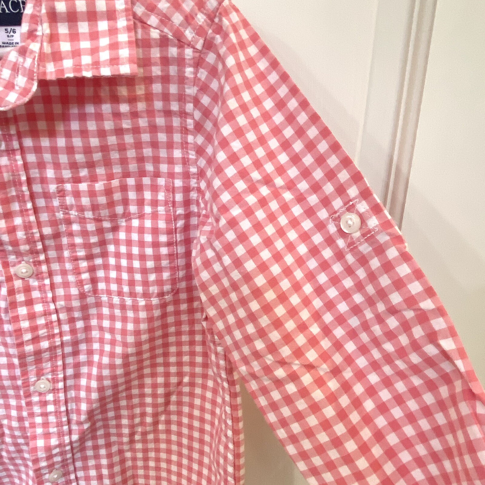 Children s Place Boys S 5/6 Button Down Dress Casual Shirt Pink White Check