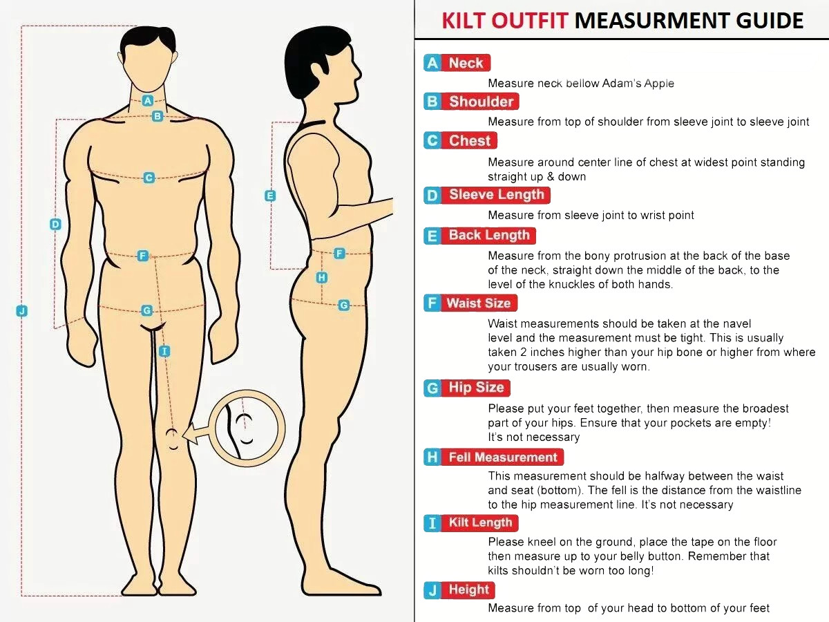 Personalization Instructions: Let us know your Size: NECK SIZE (INCHES) * SHOULDER WIDTH (INCHES) * CHEST SIZE (INCHES) * SLEEVE (INCHES) * BACK LENGTH (INCHES) * WAIST SIZE (INCHES) * KILT LENGTH (INCHES) * KILT Waist (INCHES) *