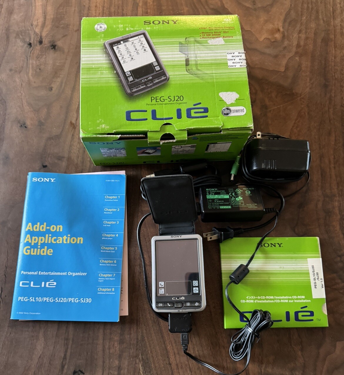 Sony CLIE PalmOS PEG-SJ20/U PDA with Cables/PSU/Box/Books/Cover/Battery - Tested