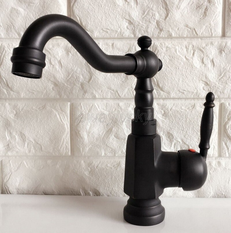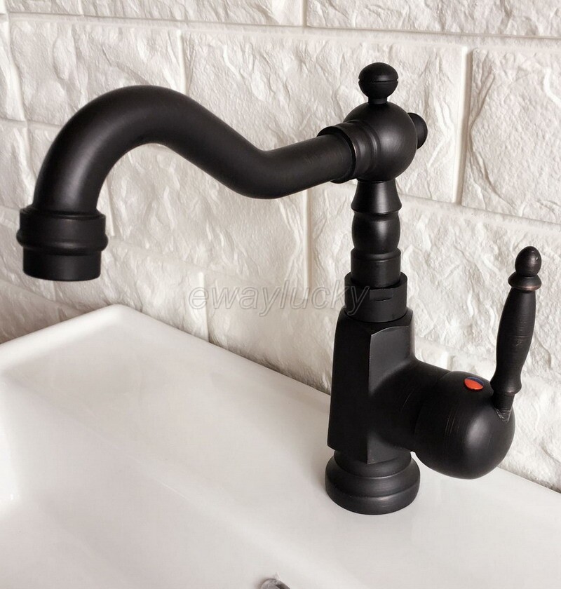 Oil Rubbed Bronze Swivel Spout Bathroom Faucet Cold and Hot Water Mixer Tap