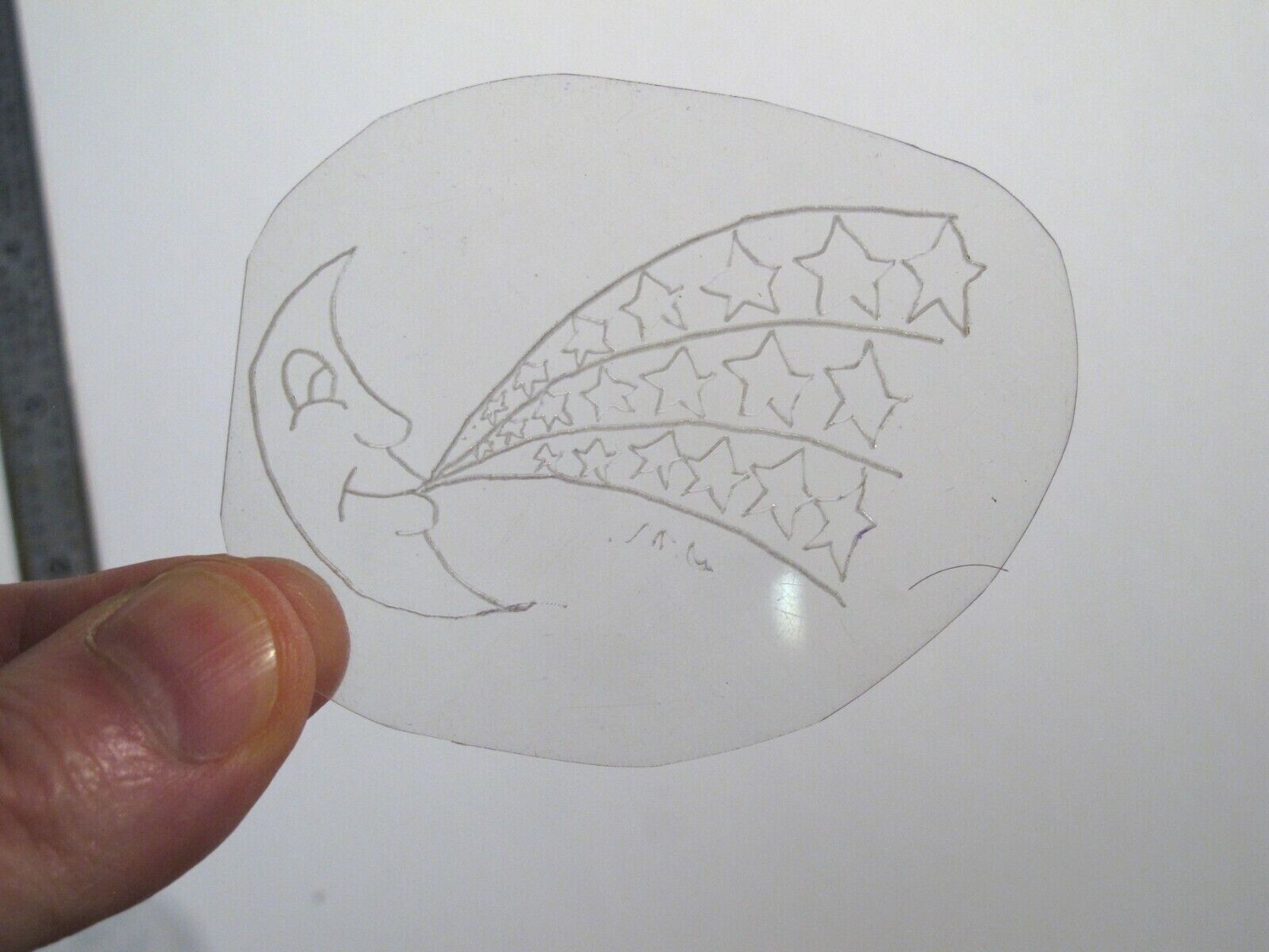 vtg 1960s 1970s Tattoo acetate stencil Moon and Rainbow Stars signed v2 SKY3