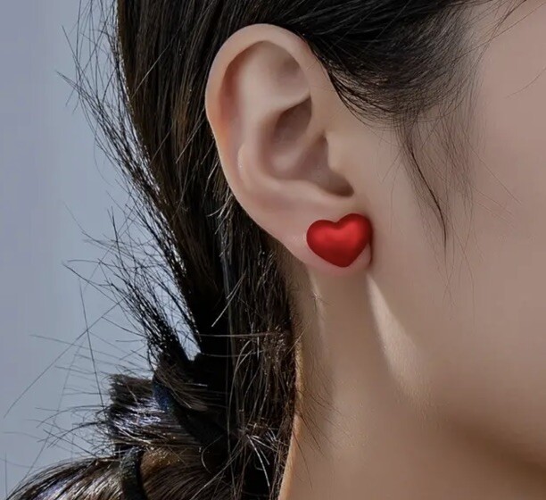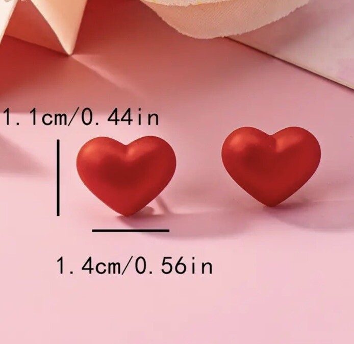 Heart Earrings Stud Red Heart Cute Love Pierced Lobe Resin Fun Chic Fashion New