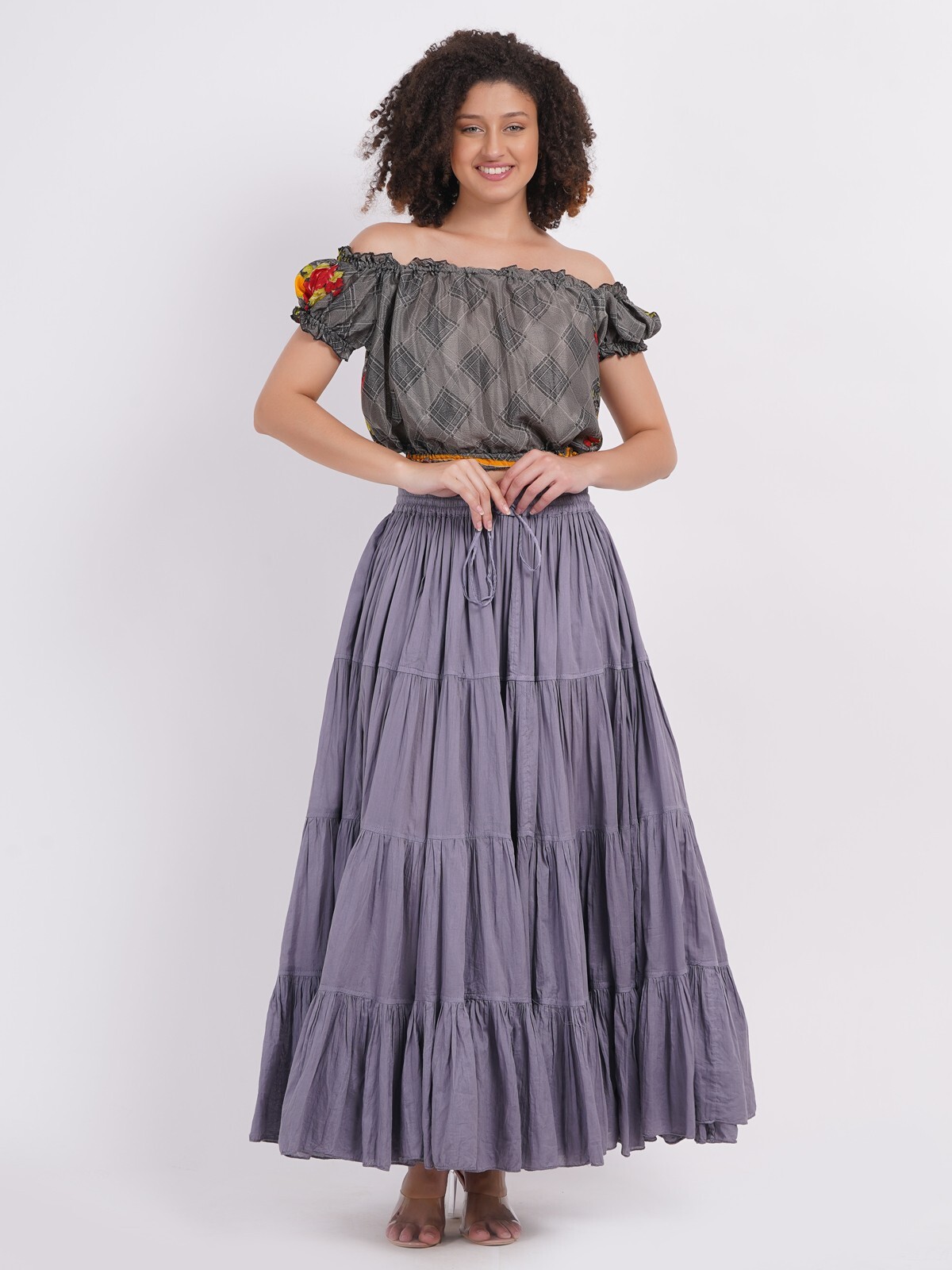 Women's 25 Yard Tribal Belly Dancing 100 Cotton, 4 Tiered Bohemian Skirt Gray