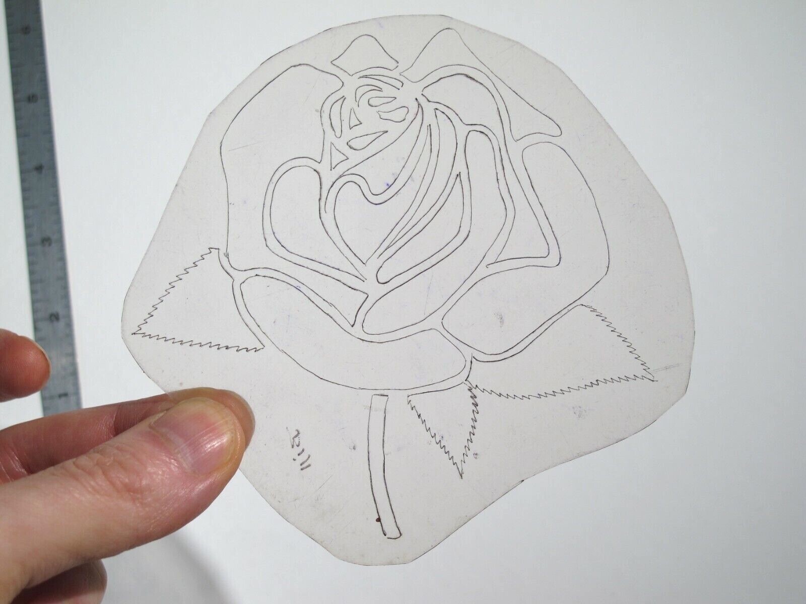 vtg 1960s 70s Tattoo Flash acetate stencil Stylized Rose signed RS6
