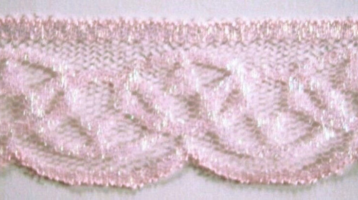 5 Yds. Light Pink Iridescent 1 1/2 Soft Nylon Scallop Lace L-406p