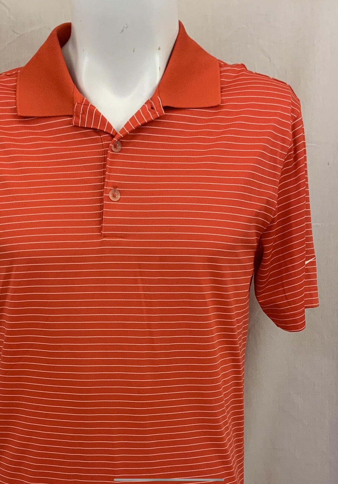 Nike Golf Shirt S Orange Stripe 100 Polyester Polo Short Sleeve YGI W1-9