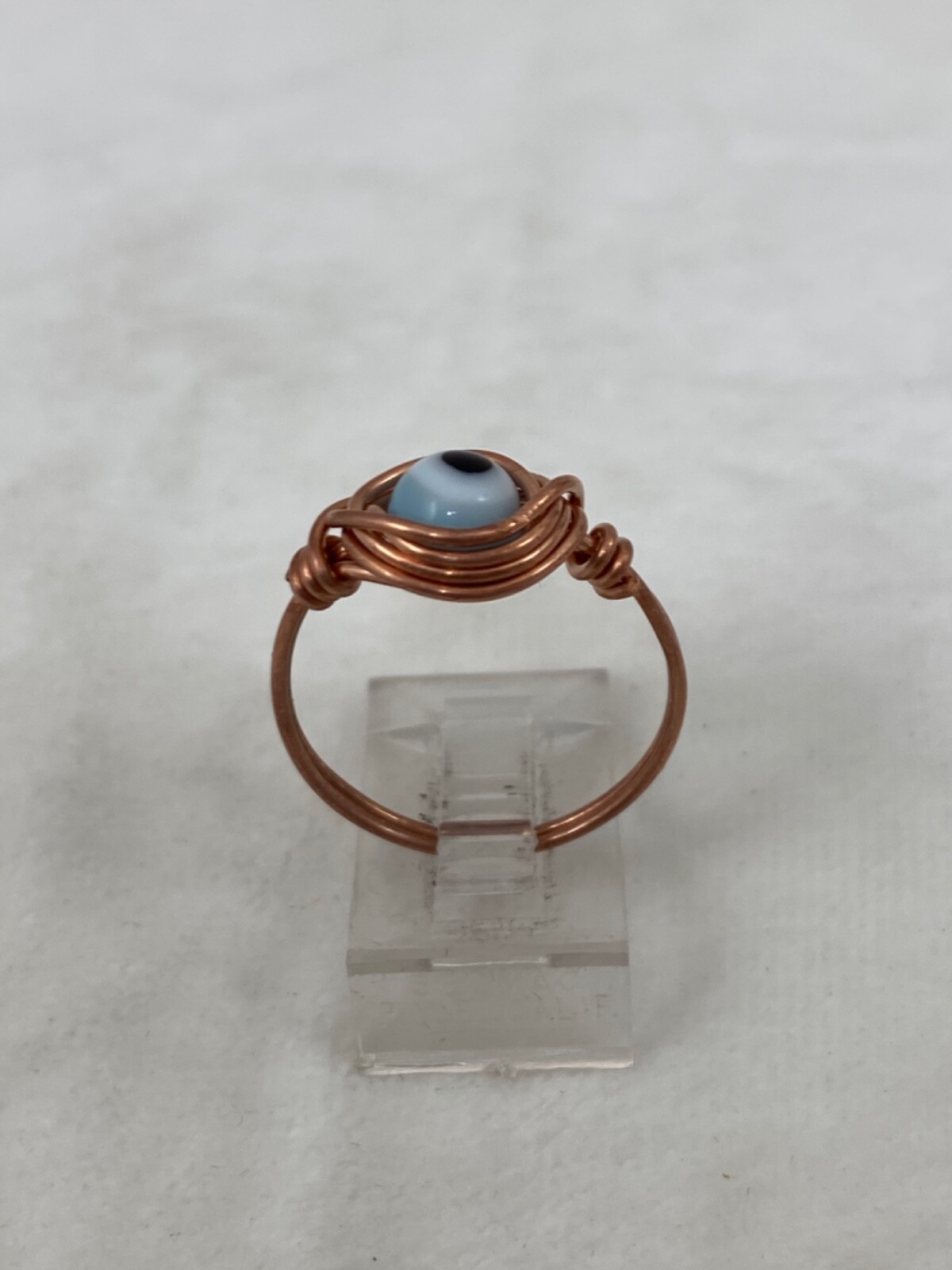 Handmade Copper Wire Wrap Evil Eye Glass Bead Ring Size 7 1/2 226