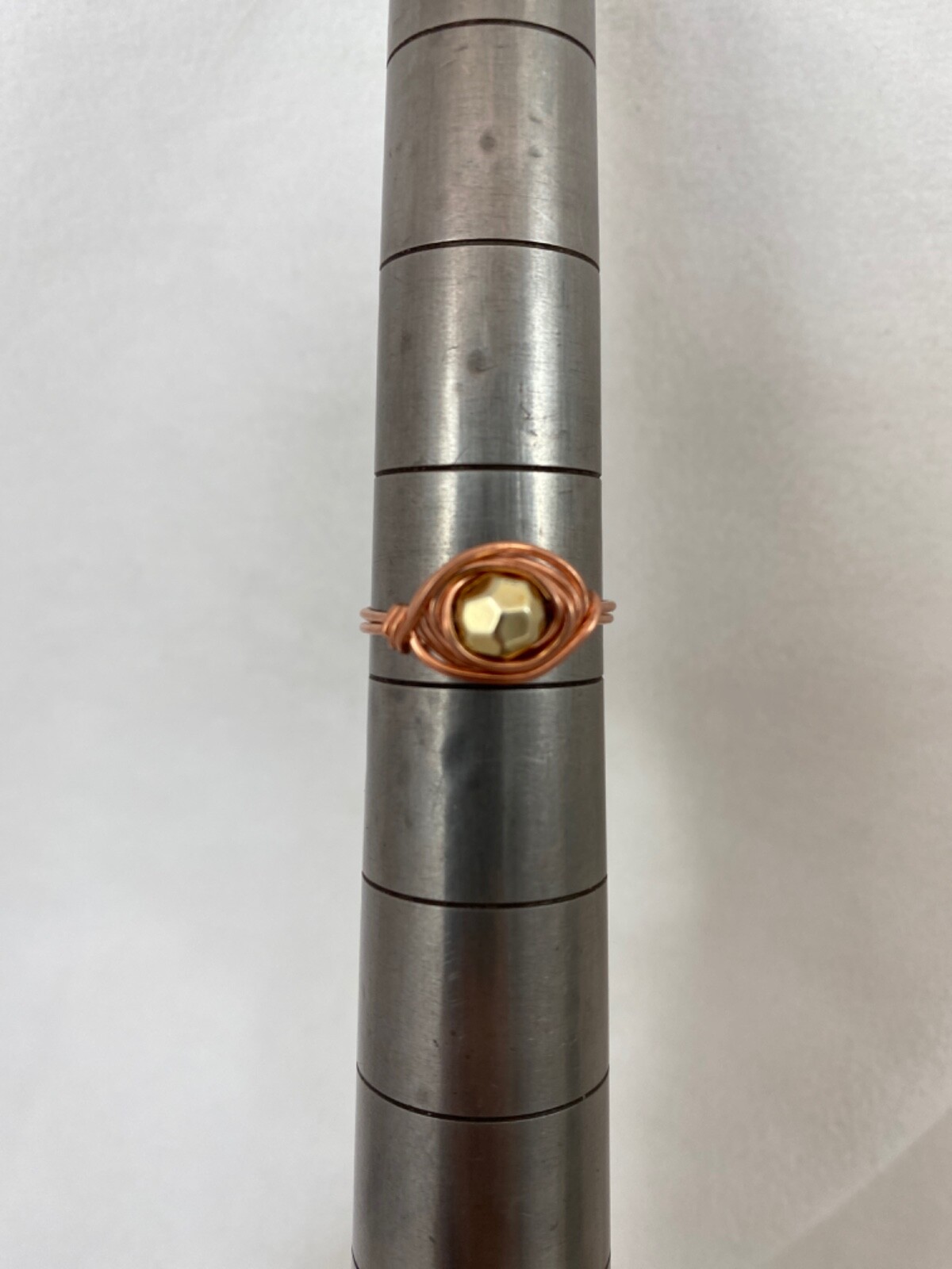 Handmade Copper Wire Wrap Glass Bead Ring Size 7 3/4 219