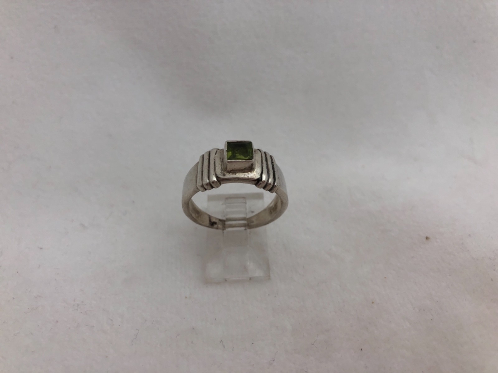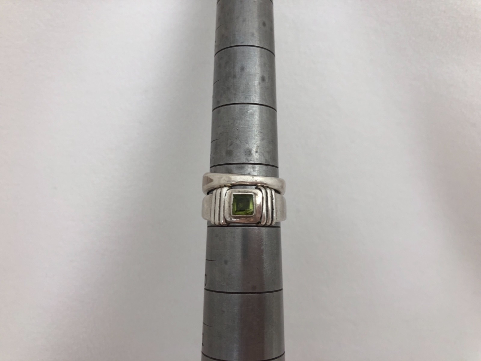 как выглядит Sterling Silver .925 5.5mm Square Peridot Band Ring Sizes 8.25 8.75 фото